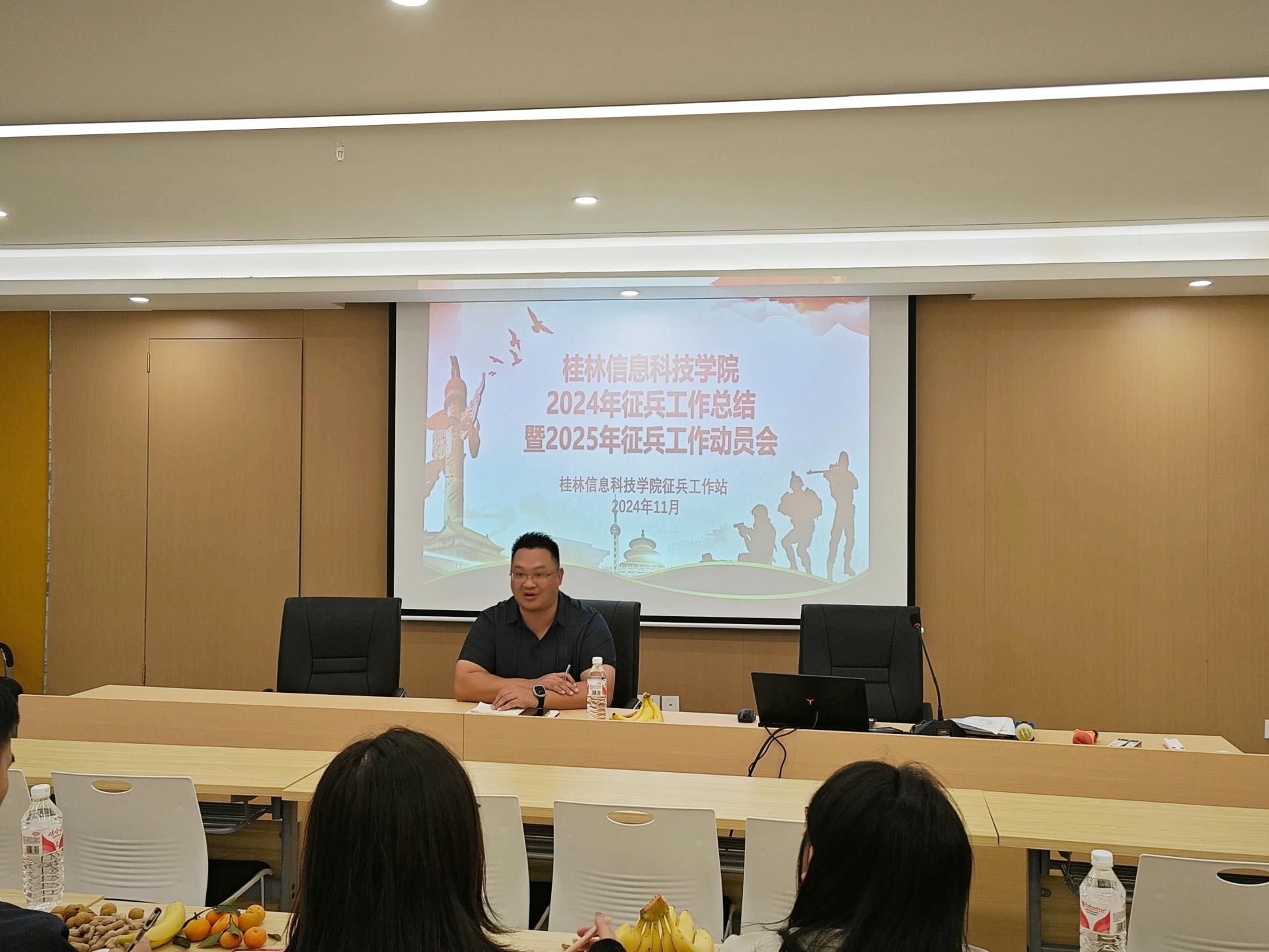 11月8日上午,学校武装部在一站式服务中心召开2024年度征兵工作总结暨2025年征兵工作动员培训会,武装部副部长罗光铭、各学院学工办主任、毕业班辅导员及征兵工作联络员出席会议。