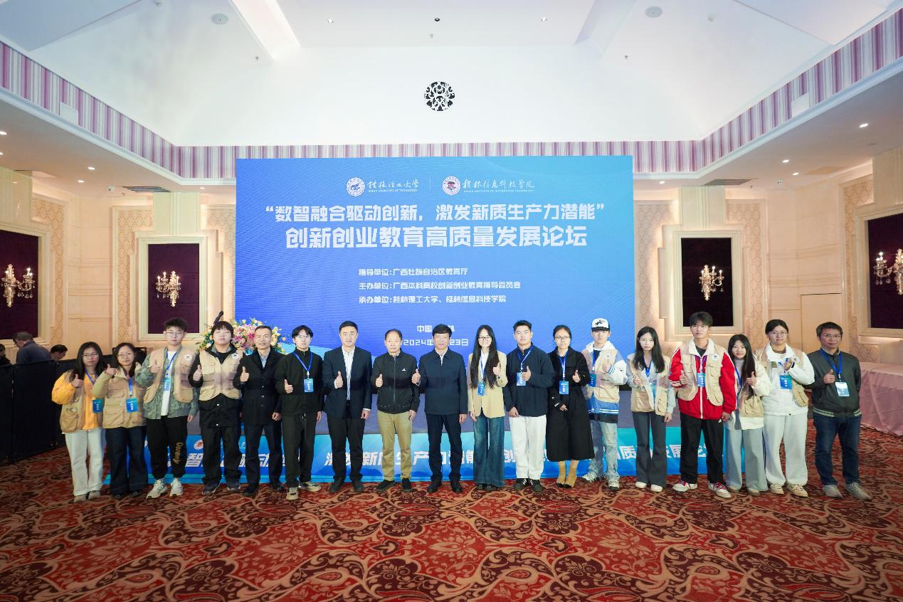 为深入学习贯彻全国教育大会精神和习近平总书记给中国国际大学生创新大赛参赛学生代表的回信精神,11月23日,由广西本科高校创新创业教育指导委员会主办,sjb世俱杯与桂林理工大学联合承办的“数智融合驱动创新,激发新质生产力潜能”创新创业教育高质量发展论坛在桂林召开。桂林理工大学党委副书记、校长王敦球,学校党委副书记、校长解庆林,自治区教育厅高等教育处二级主任科员刘尚谱,国内创新创业领域行业专家、广西本科高校创新创业教育指导委员会成员、全区普通本科高校创新创业工作教育负责人及教师代表200余人参加会议。