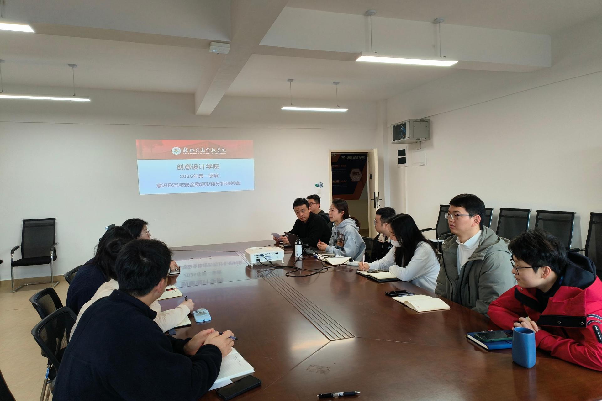 3月23日,创意设计学院在守正楼G517会议室顺利召开2026年第一季度意识形态分析研判会。此次会议由创意设计学院党总支书记范恒祯主持,党总支成员及各年级辅导员参与,共同对学院第一季度的意识形态工作进行全面而深入的分析研判,进一步巩固主流思想舆论阵地,为学院全年工作奠定坚实基础。会上,范恒祯书记汇报了第一季度意识形态工作的开展情况。学院坚持以习近平新时代中国特色社会主义思想为指导,通过构建“理论学习中心组...