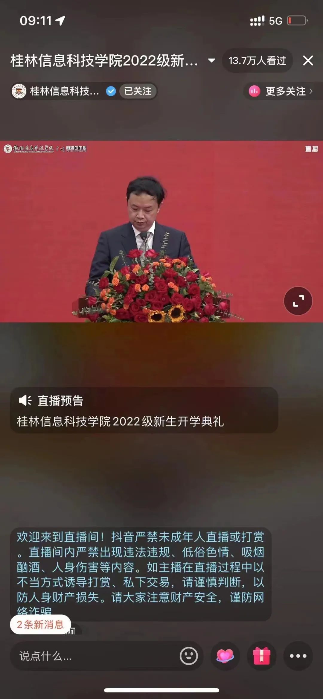 大会采取全媒体直播方式线上线下直播,学校融媒体实时将典礼细节呈现双屏,让在场新同学叹为观止。据统计,学校官方微信、抖音收看人次超16万,刷新学校大型活动单场直播记录。