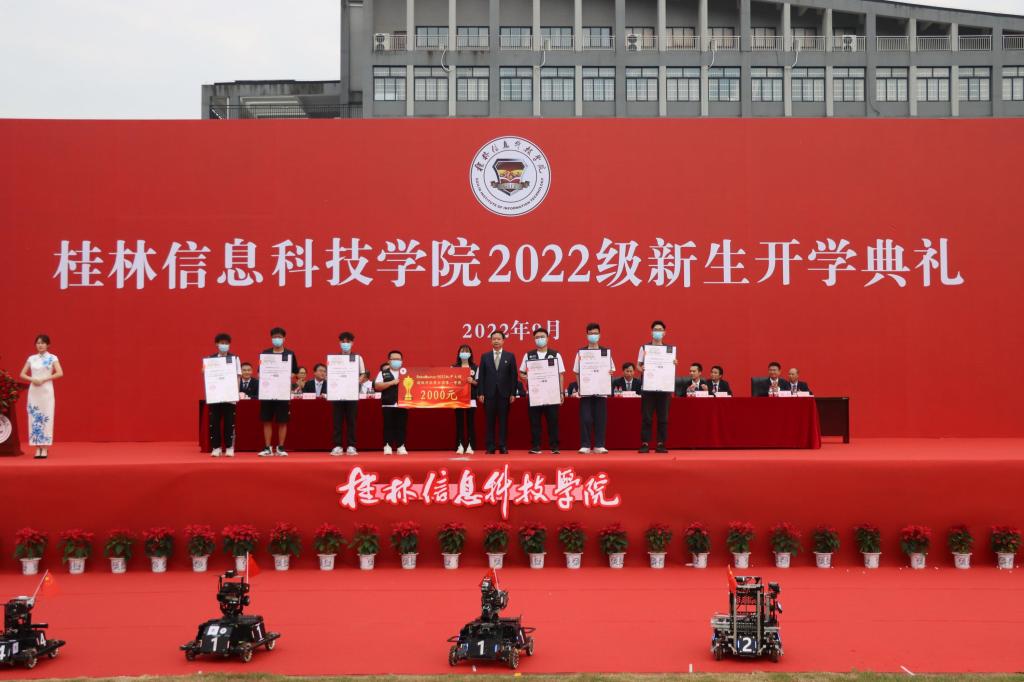 现场,sjb世俱杯兴禾GIRT战队与与桂林电子科技大学Evolution战队共同带来机器人对抗展示赛,迎来全体师生热烈掌声。罗欣董事长、梁丁丁校长分别为sjb世俱杯获得全国机甲大赛、全国大学生智能汽车竞赛一等奖两支队伍颁奖。