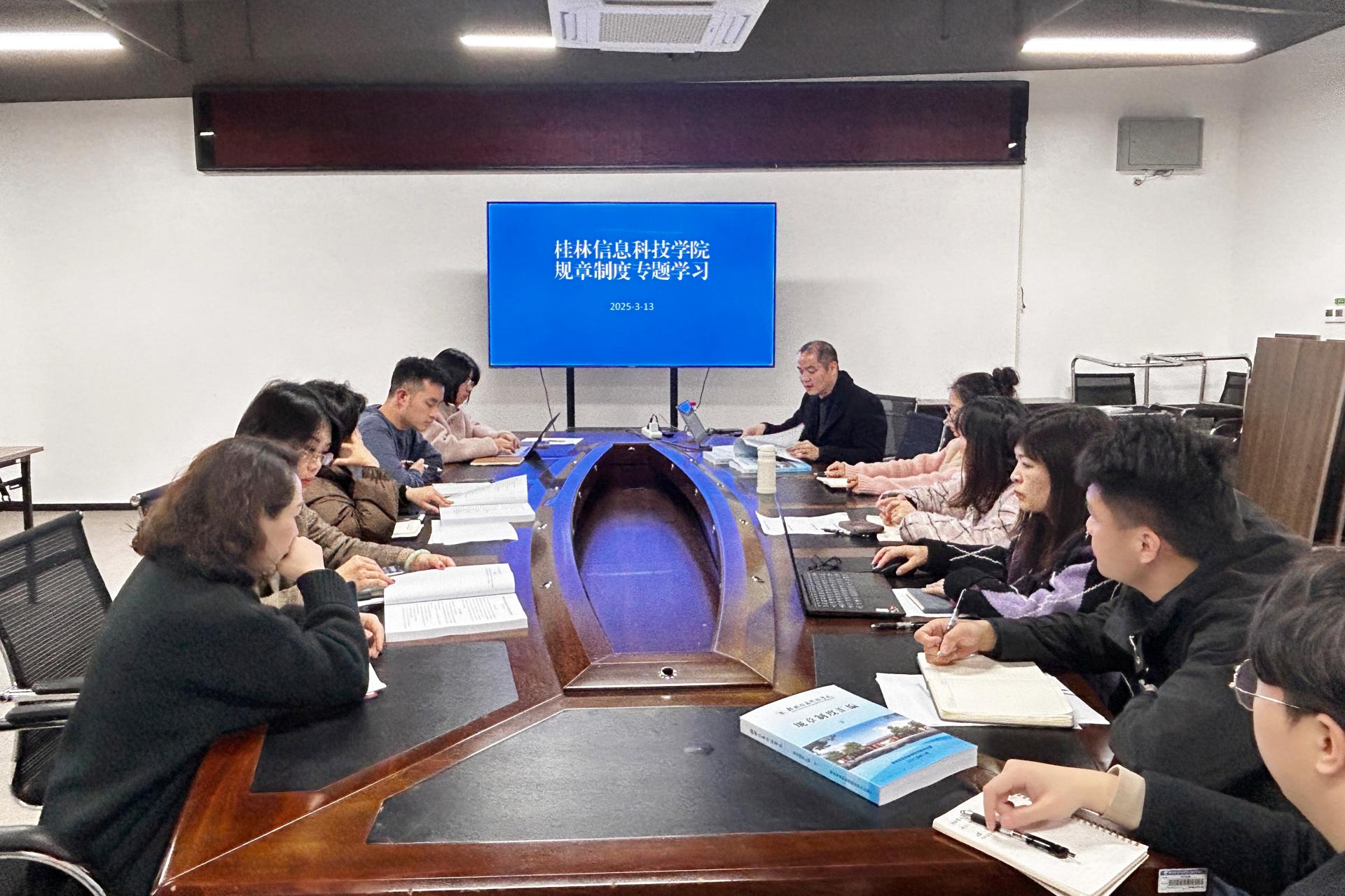 3月13日,党委宣传部于知行楼818会议室组织召开了《sjb世俱杯官方网站规章制度汇编》学习会议。在学校不断发展、各项工作持续推进的大背景下,此次会议目的在于助力部门老师深入理解学校各项规章制度,进一步提升工作业务水平,为学校宣传工作的高效开展筑牢基础。会议由党委宣传部副部长张文源主持。