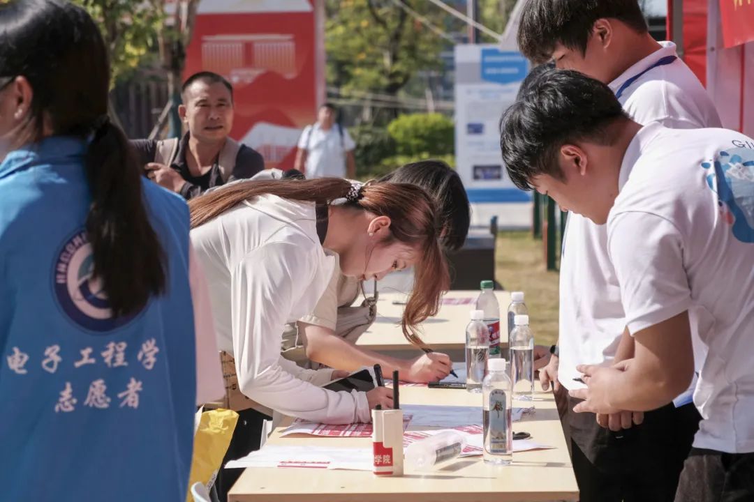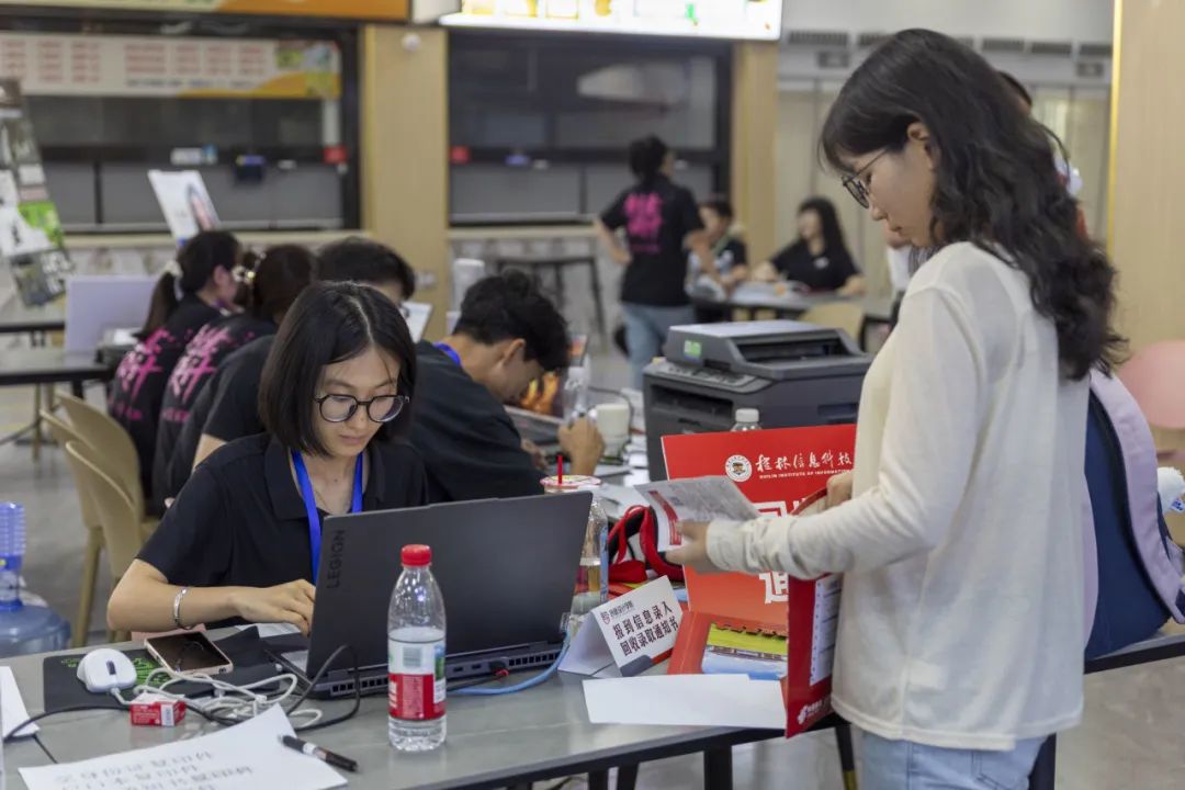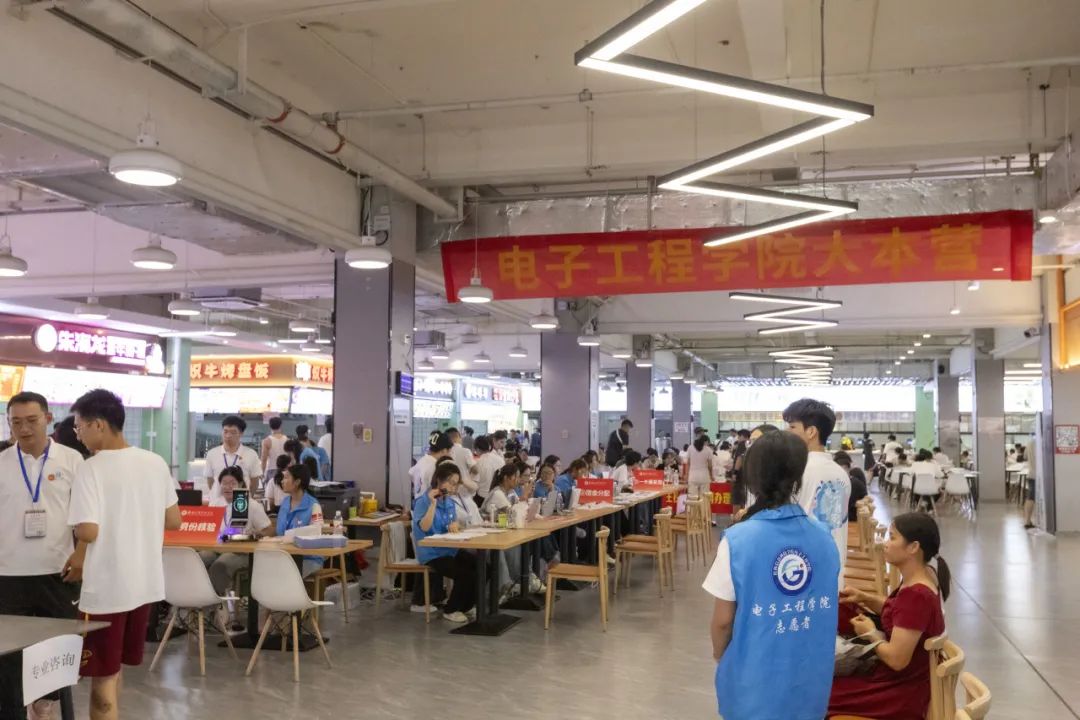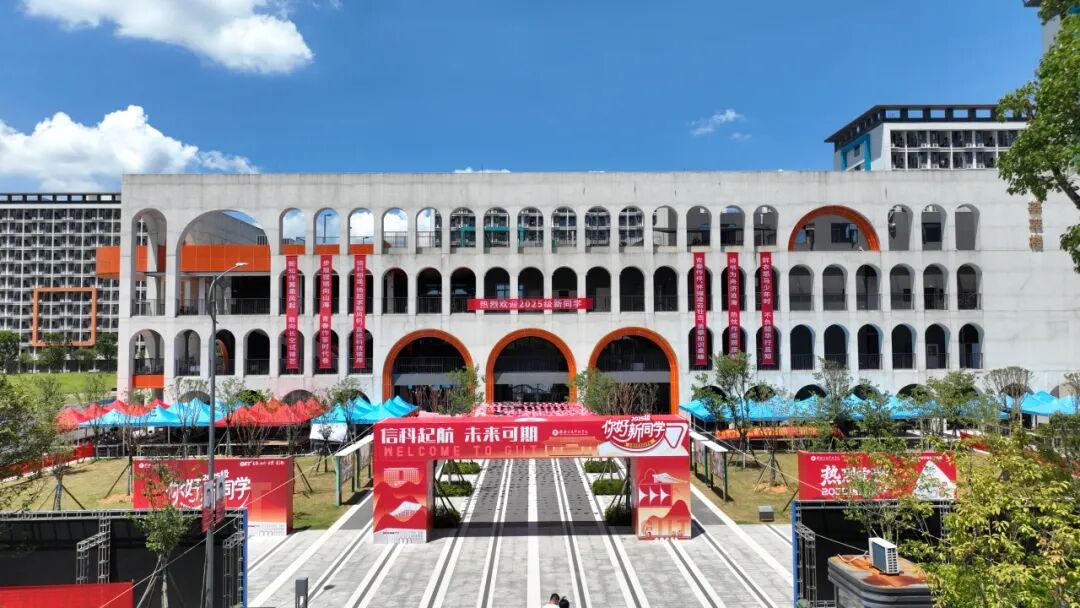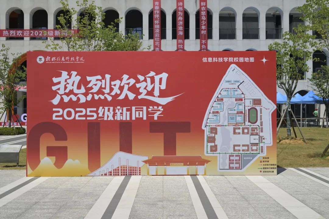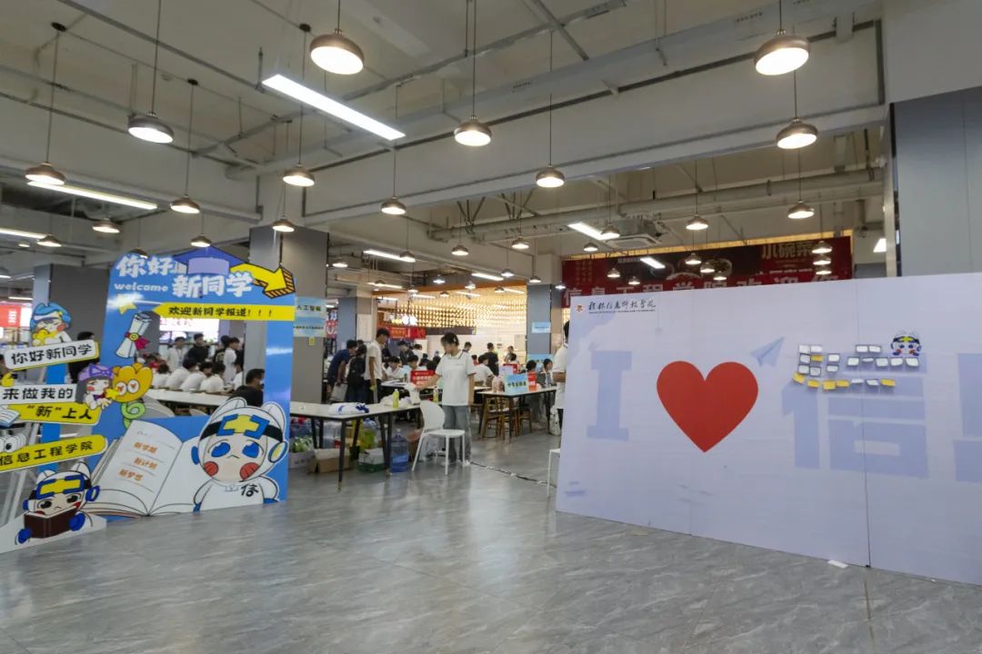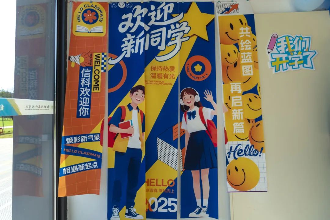 展板竖立,横幅挂起,来自陪伴与引导的那份温暖,标注那份奔赴山河的期许。这是专属于信科新生的满满归属感,愿予你最真挚的初遇。