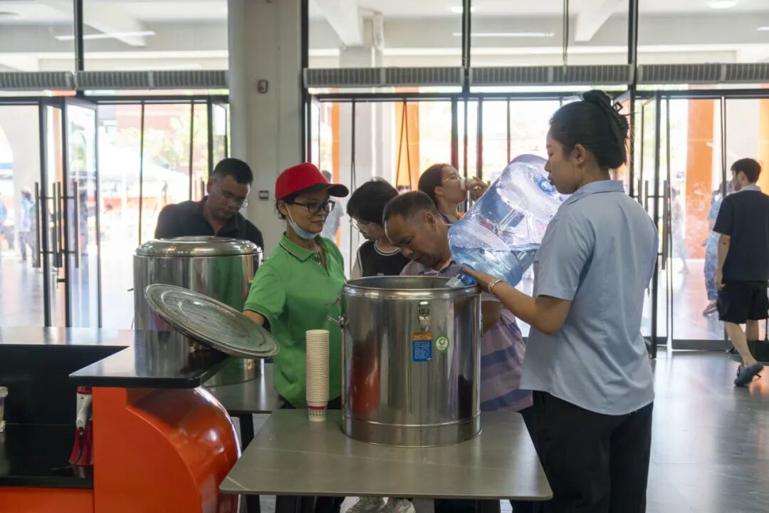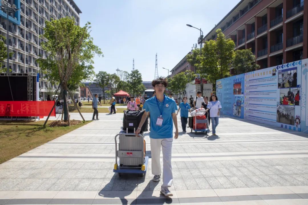 校内动线实时调度,维持入校报到秩序。食堂餐饮,服务新生与家长休息。车辆随时迎接新生包裹接送,组织志愿者为新生提上行李。“有困难,找阿姨”从不只是一句口号,而是宿管人员以真心承诺。