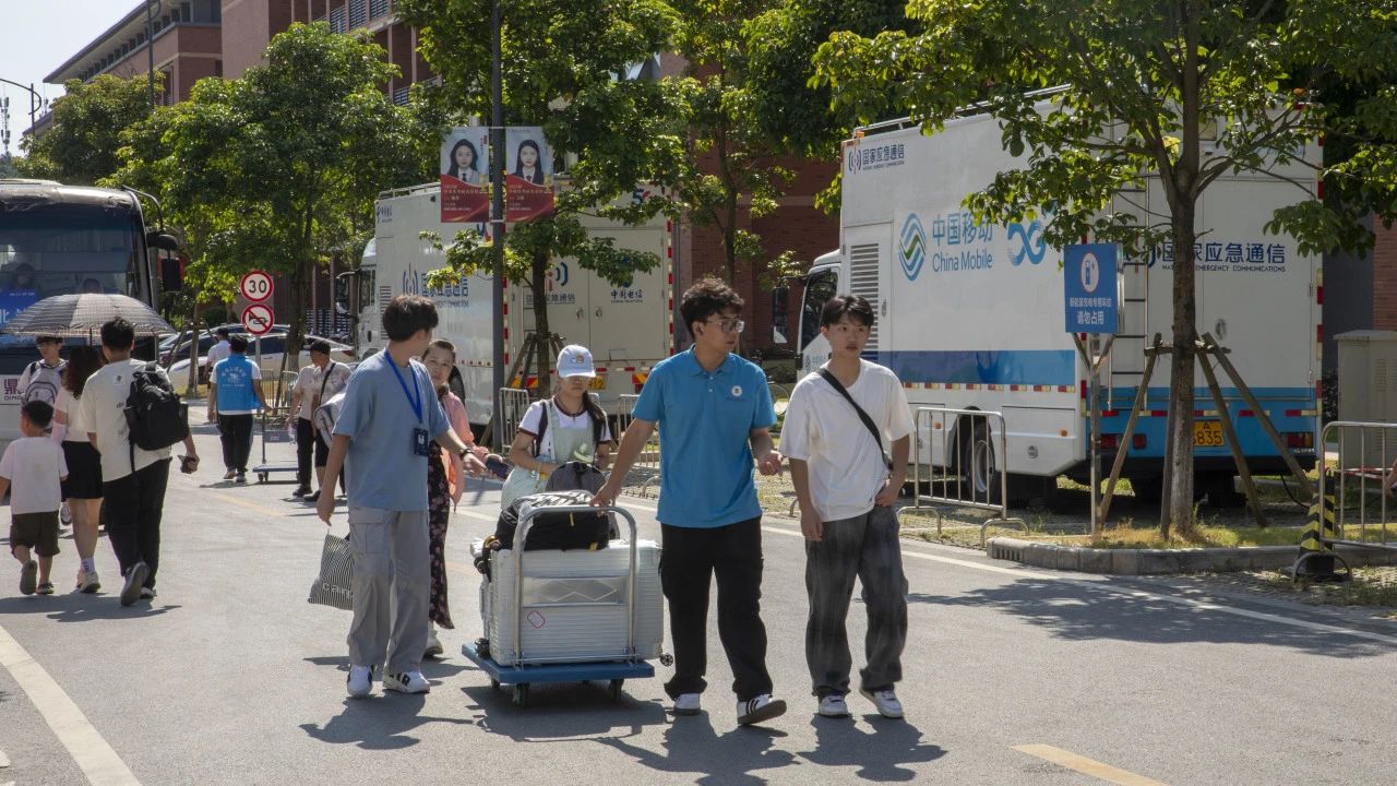 身穿蓝马甲的学生志愿者,穿梭在校门口与宿舍间,接过沉重行李,也接住了新生初到时的忐忑与陌生。