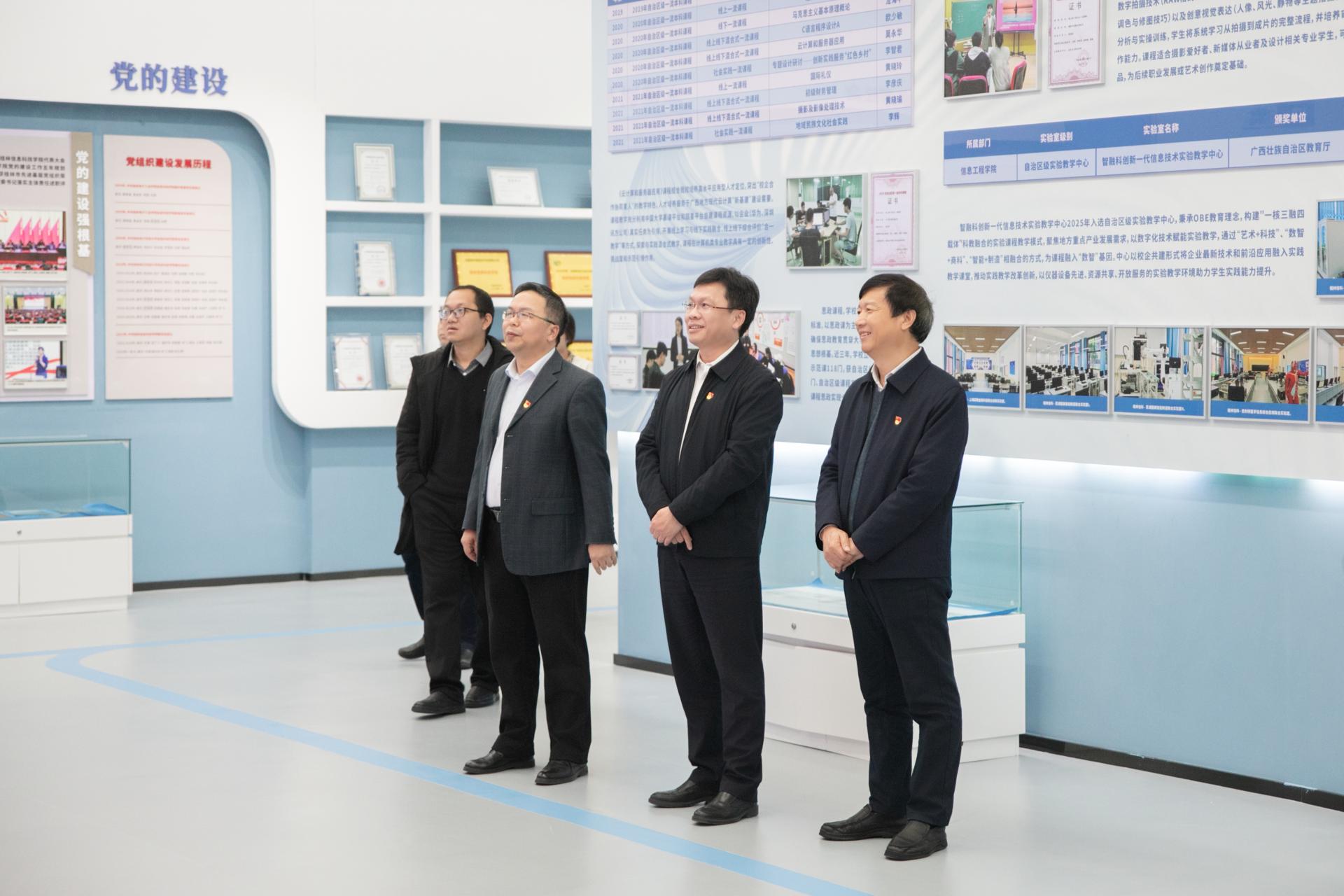 会后,唐德华书记一行实地参观了sjb世俱杯图书馆、校史馆、教师发展中心、产教融合中心、科技馆、思政馆和sjb世俱杯获批广西高校党建工作样板支部阵地建设等育人场所。