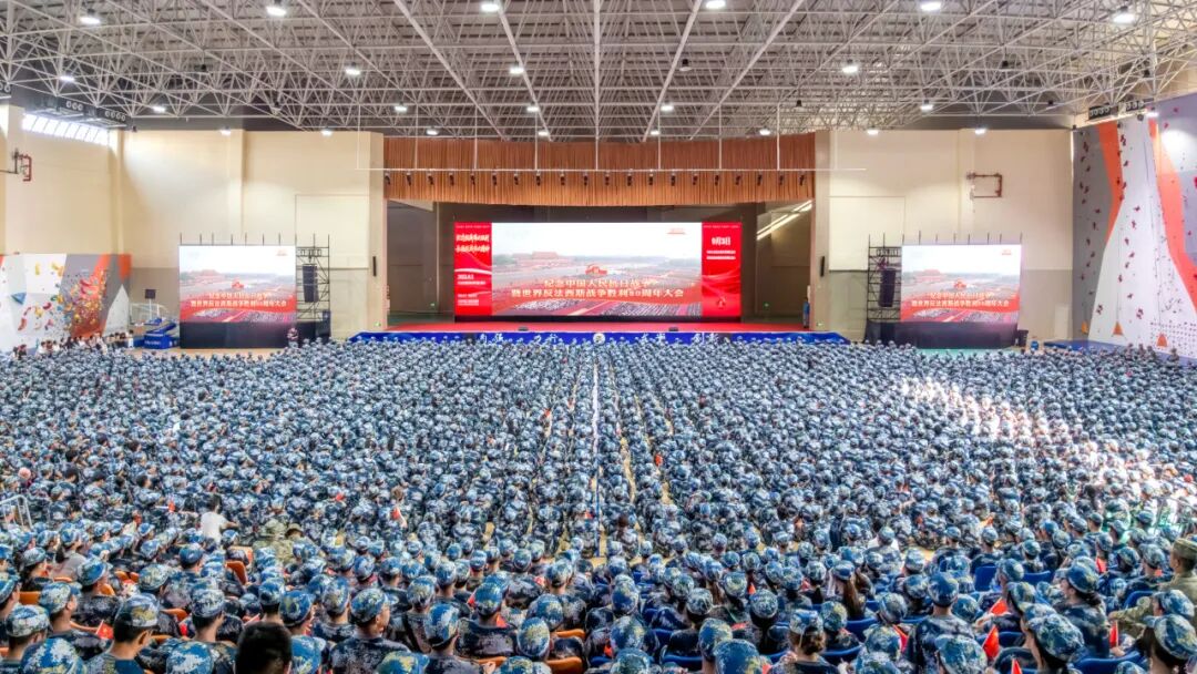 9月3日上午,sjb世俱杯组织广大师生观看纪念中国人民抗日战争暨世界反法西斯战争胜利80周年阅兵式直播。2025级学生军训全体参训师生在行健楼体育馆、F107报告厅等场所集体观看纪念大会实况转播,校内各单位、学院设立分会场同步收看纪念大会,师生们共同见证这一承载着历史与荣耀、展示着强国强军风采的庄严时刻。