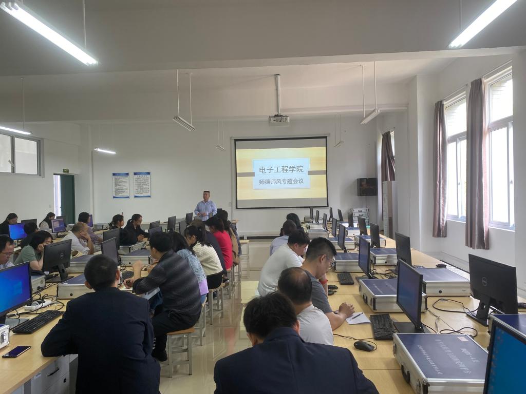 10月28日,电子工程学院在52207实验室召开师德师风专题会议。会议由学院院长韩桂明主持,学院全体教职工参加会议。