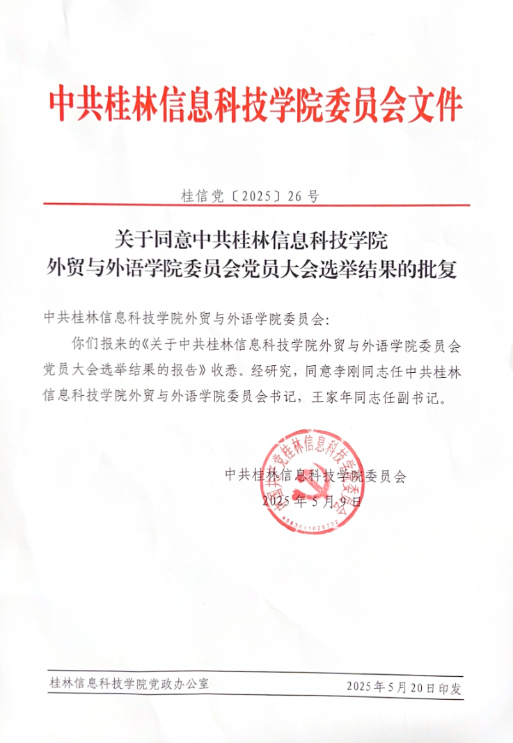 关于同意中共sjb世俱杯官方网站外贸与外语学院委员会党员大会选举结果的批复