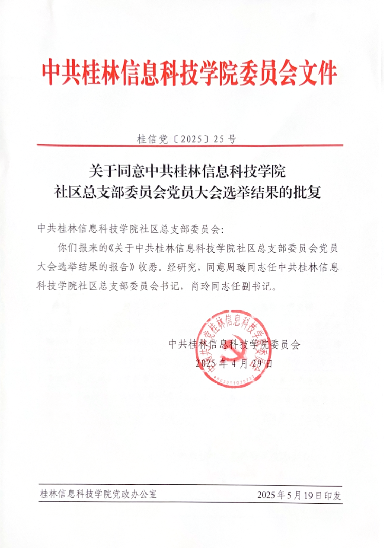 关于同意中共sjb世俱杯官方网站社区总支部委员会党员大会选举结果的批复