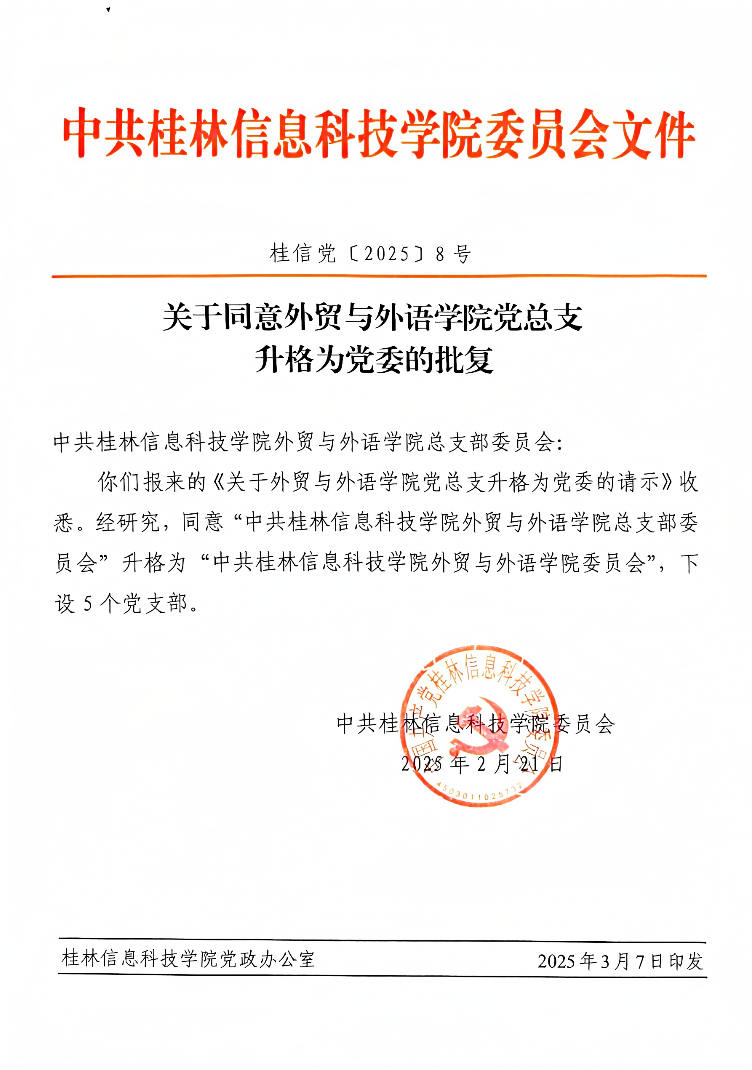 关于同意外贸与外语学院党总支升格为党委的批复