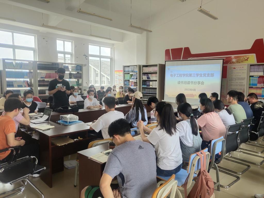 为推进学习型党组织建设,激发党员学习积极性,努力营造爱读书、读好书、善读书的良好氛围,4月26日,电子工程学院第三学生党支部开展以“多读书、读好书、好读书”主题读书分享会,会议由支部书记欧盛福主持,支部全体在校党员参加会议。