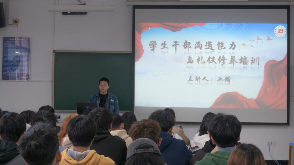 会上,池老师以“学生干部沟通能力与礼仪修养”为主题展开培训,主要从倾听、反馈、社交礼仪三个方面详细讲解。池老师通过理论与实例相结合的方式,为学生干部们介绍基础沟通技巧,及如何运用规范礼仪提升自身的文明修养,如何实现有效沟通。