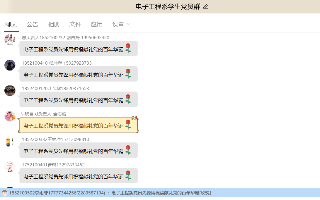 为庆祝中国共产党成立100周年,连日来,电子工程系党员先锋队结合“七一”组织全体委员开展用祝福献给党等丰富多彩的庆祝活动,激励引导广大党员坚定理想信念、永葆党员本色、立足本职岗位,以崭新的风貌、饱满的热情、扎实的作风,向建党100周年献礼。