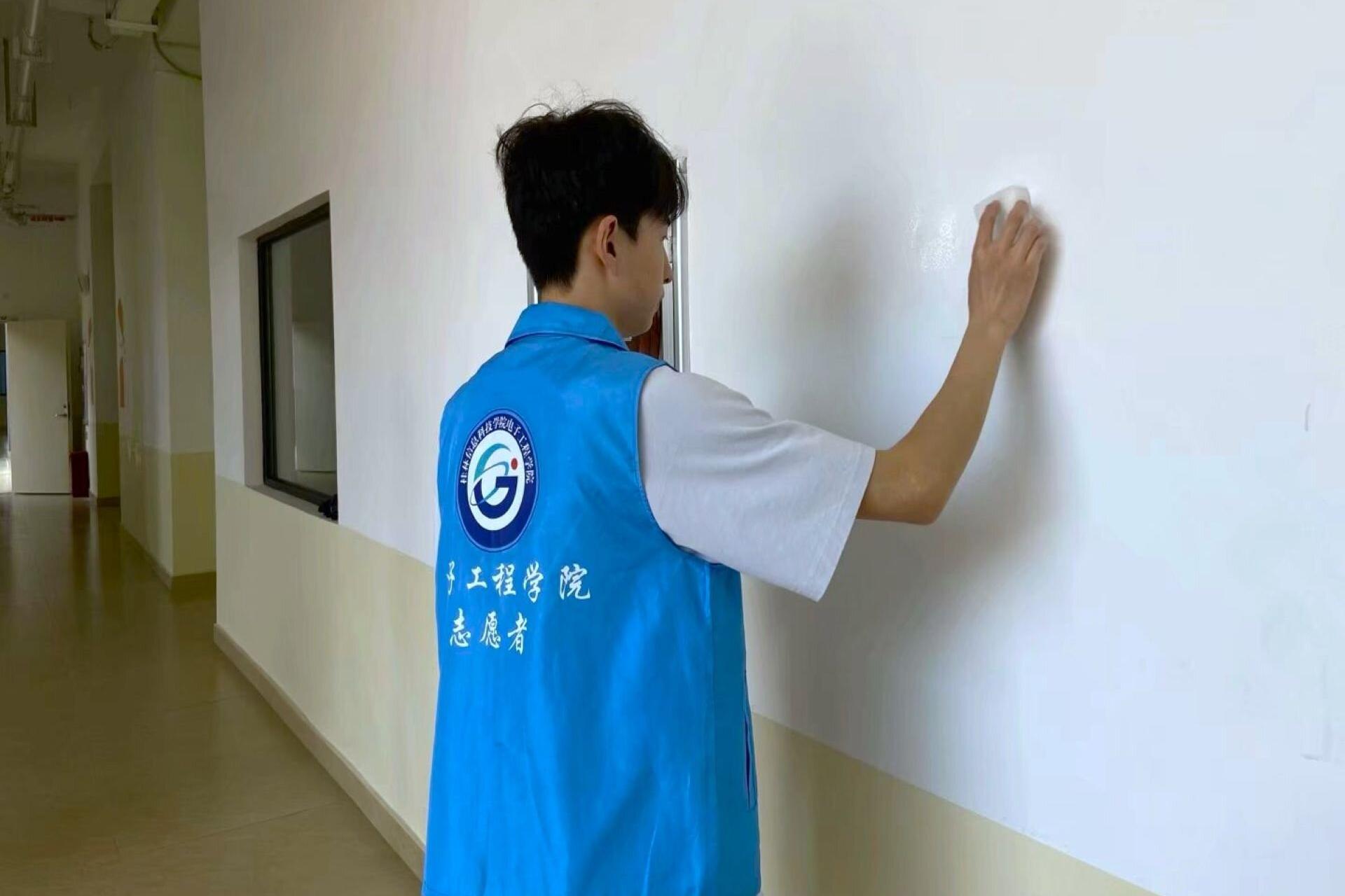 活动当天,志愿者们提前抵达指定地点集合,有序领取清洁工具后前往各自的任务区域。他们分工明确、配合默契,有的弯下腰身,有的踮起脚尖,一丝不苟地擦拭着每一寸墙面,不放过任何一个角落。经过大家的共同努力,教学楼的墙面焕然一新,教学楼的环境得到了显著改善。