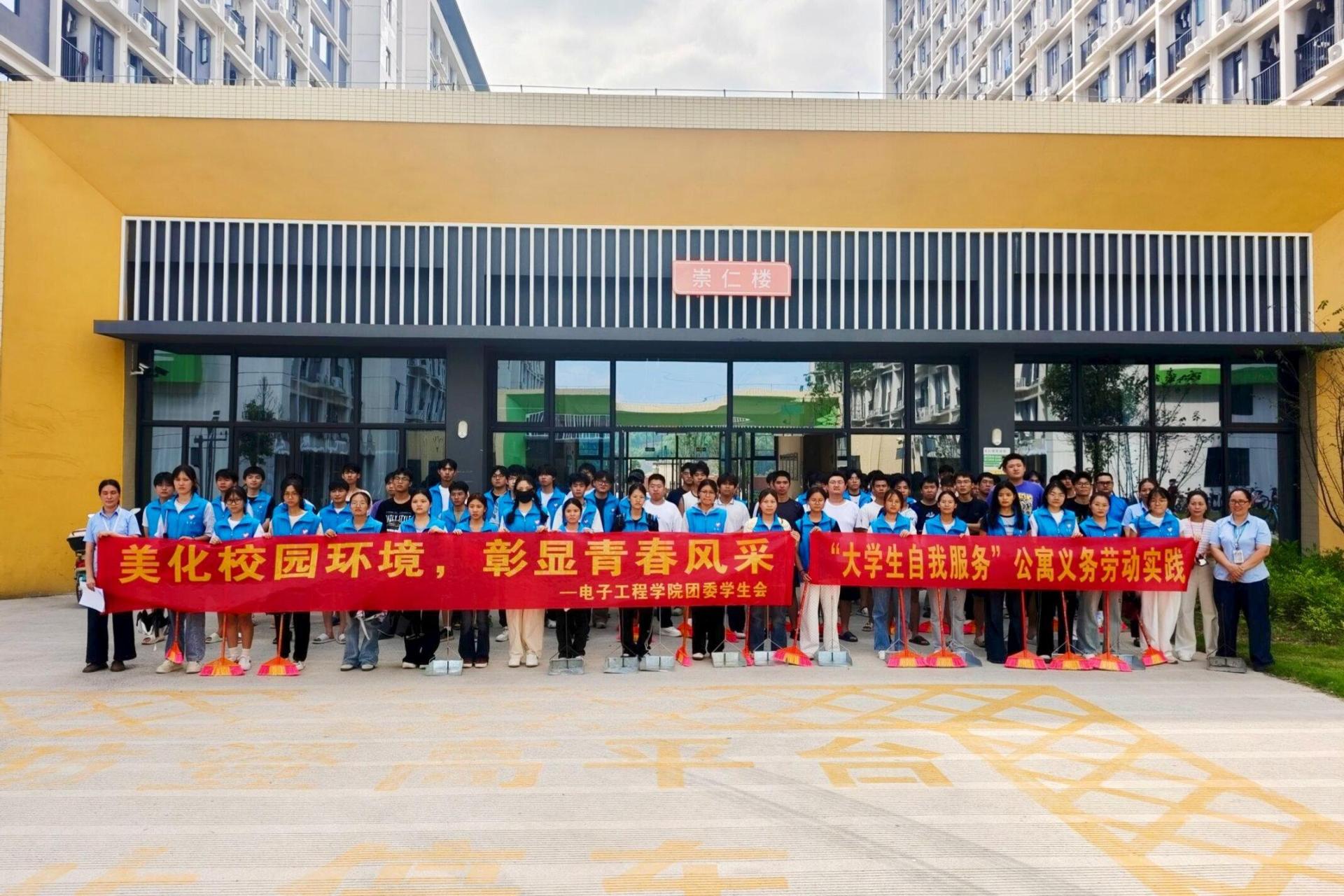为弘扬劳动精神,培育志愿服务文化,引导学生在实践中增强责任意识,共建美丽校园,9月19日下午,电子工程学院组织学生志愿者开展“以劳动绘就校园美景,用志愿践行青春担当”主题志愿服务活动,对崇仁楼进行了细致清扫与维护。