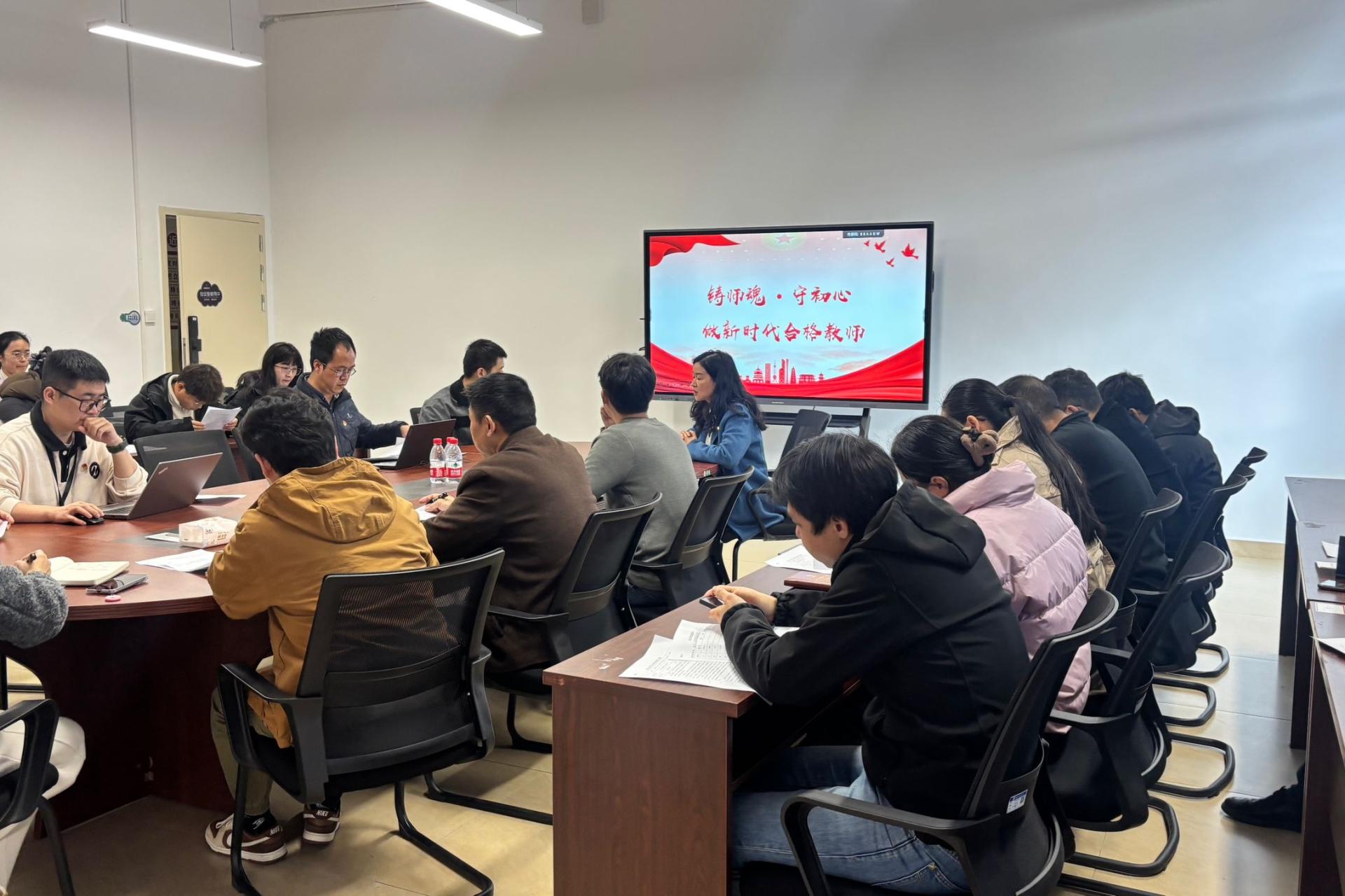 课上,梁自珍书记结合当前师德师风建设形势,深入剖析了当前教师队伍中存在的优势与不足。她以近两年高校教师队伍师德师风案例为切入点,强调加强师德师风建设的重要性。梁书记从现实问题、职业初心与时代要求三个维度展开分析。她指出,面对人工智能快速发展带来的教育变革,教师的人格魅力与情感关怀依然是不可替代的核心力量。她勉励全体党员以先进典型为灯塔,以反面案例为镜鉴,坚定理想信念,坚守育人底线。