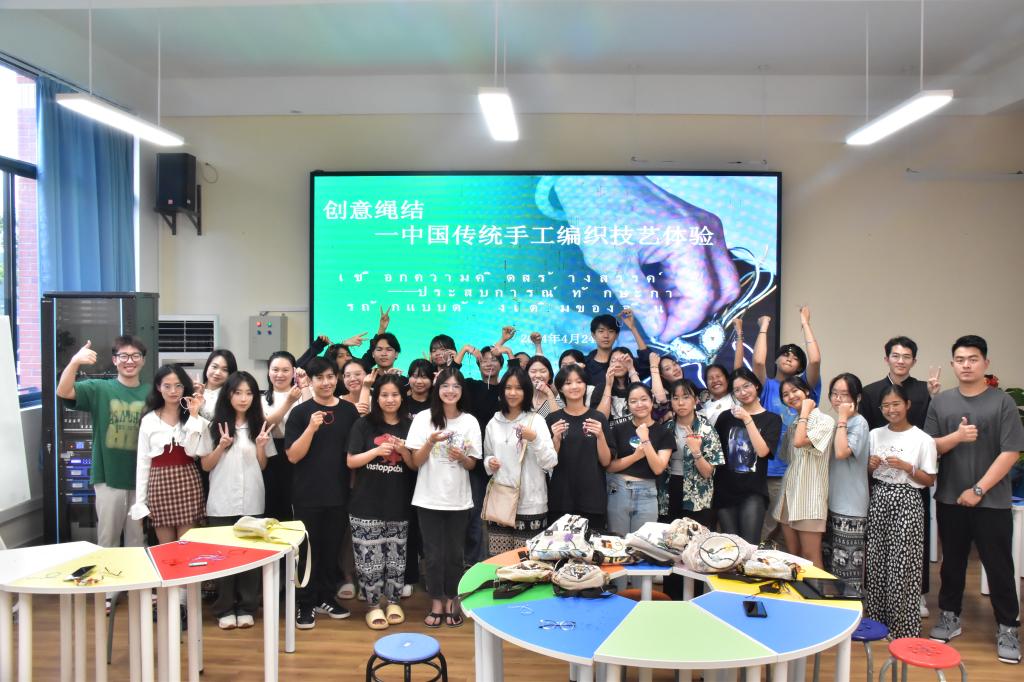 泰国学子巧手牵线,共绘东方编织神韵为弘扬中国传统文化,传播非遗之美。4月24日下午,外贸与外语学院于F110教室举办中国传统手工编织技艺体验课,全体泰国学生参加活动。课程由陈韵姿、张荣好、黎倩三位老师主讲,与泰国学生共同探索并实践中国的传...