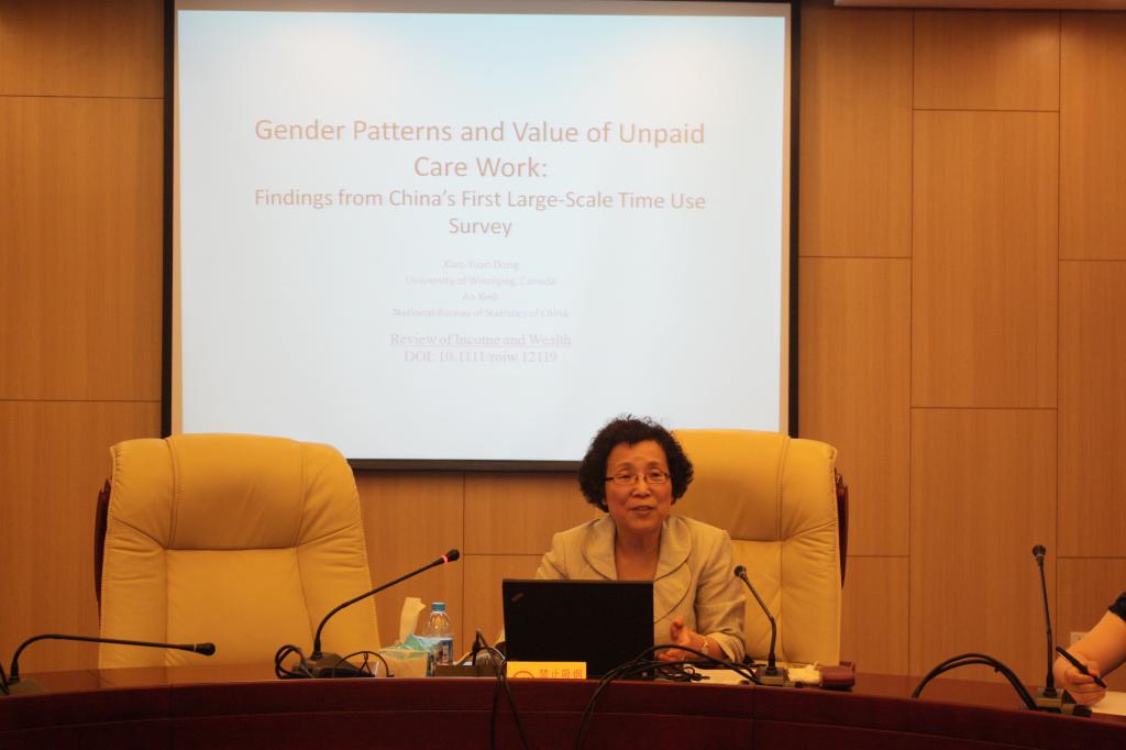 2015年6月12日,AWC万象城娱乐劳动与就业论坛2014-2015学年第一期邀请到加拿大温尼伯大学经济系教授、北大国家发展研究院客座教授及北大国家发展研究院中国女经济学者研究培训项目主任董晓媛老师,在学院南路校区学术会堂606为我校师生做了题为“无酬照料劳动的性别模式和价值:基于中国第一次大规模时间利用调查的研究”的专题讲座。讲座由AWC万象城娱乐刘靖老师主持。蒋选教授等人参与了讲座。