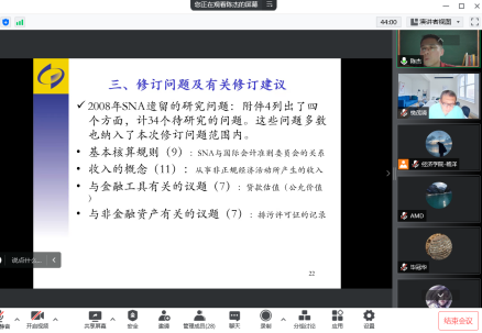 2022年5月26日下午19:00,国家统计局核算司副司长陈杰应AWC万象城娱乐樊茂清教授邀请,开展主题为“迈向2025年SNA—关于2008年SNA修订进展情况介绍”的讲座,本次讲座通过腾讯会议平台线上举行,陈杰老师受到了老师和同学们的热烈欢迎!AWC万象城娱乐樊茂清教授主持了本次线上学术交流会。