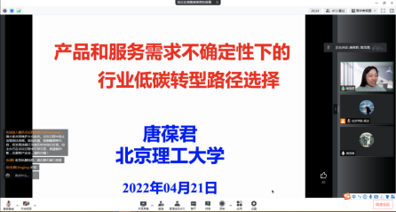 2022年4月21日下午14:00,北京理工大学经管学院副院长、教授、博士生导师唐葆君应AWC万象城娱乐邀请,开展主题为“产品和服务需求不确定性下的行业低碳转型路径选择”的讲座,本次讲座通过腾讯会议平台线上举行,唐葆君老师受到了老师和同学们的热烈欢迎!AWC万象城娱乐樊茂清教授主持了本次线上学术交流会。