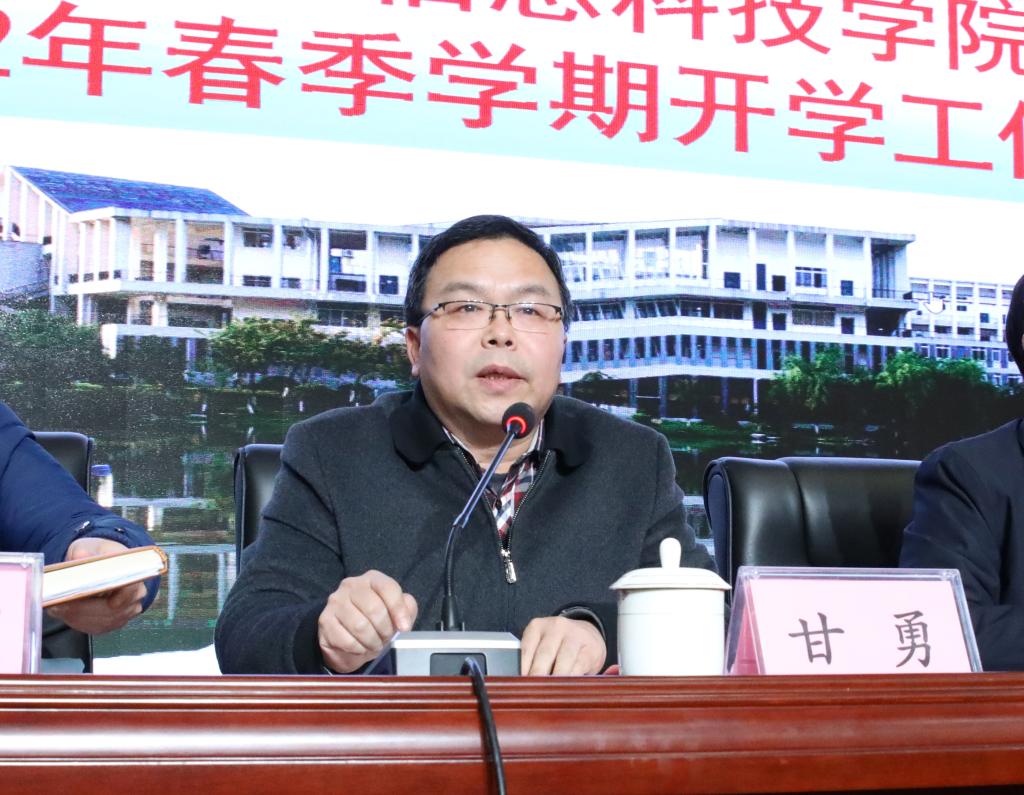 2月25日下午,学校在51206报告厅召开2022年春季学期开学工作会议,学校董事长罗欣、董事李桂华、董办主任赵海军及校领导班子全体成员出席会议。会议由学校党委书记甘勇同志主持,全体中层干部参加。