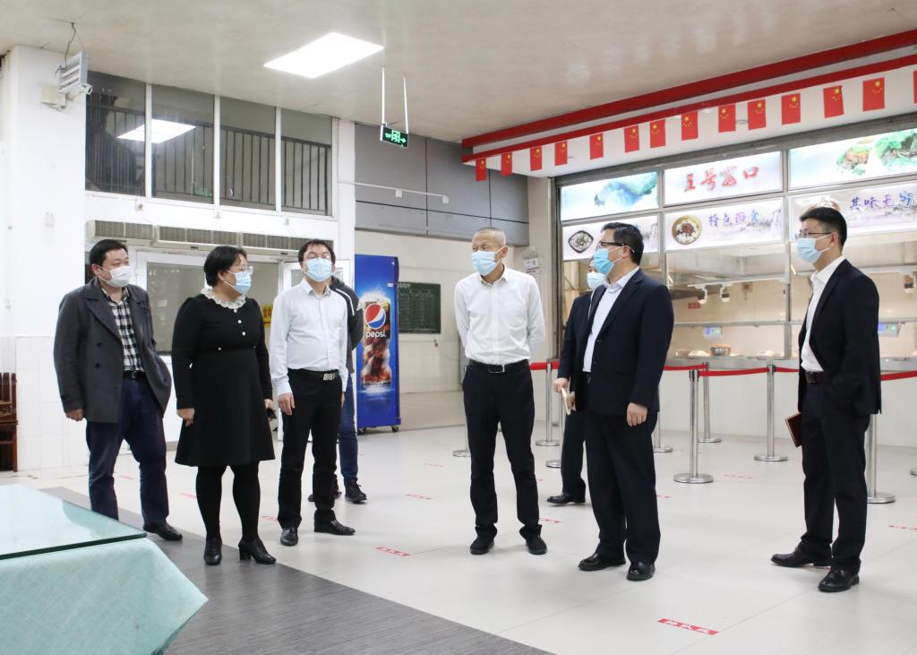 校领导一行查看了食堂落实疫情防控工作措施情况