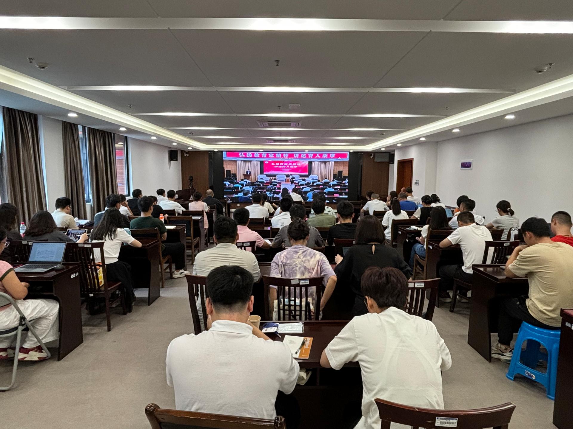 为庆祝第40个教师节,弘扬教育家精神,加大优秀教师典型宣传,加强师德师风建设,讲好广西教育故事,9月6日上午,学校组织相关人员参加了“弘扬教育家精神,讲述育人故事”视频会议。学校党委副书记李飞,党委教师工作部、党群事务部、教务处、党委学生工作部等职能部门负责人,以及全体教研室主任、辅导员代表在知行楼818会议室进行观看,其余教师通过线上方式参与学习。