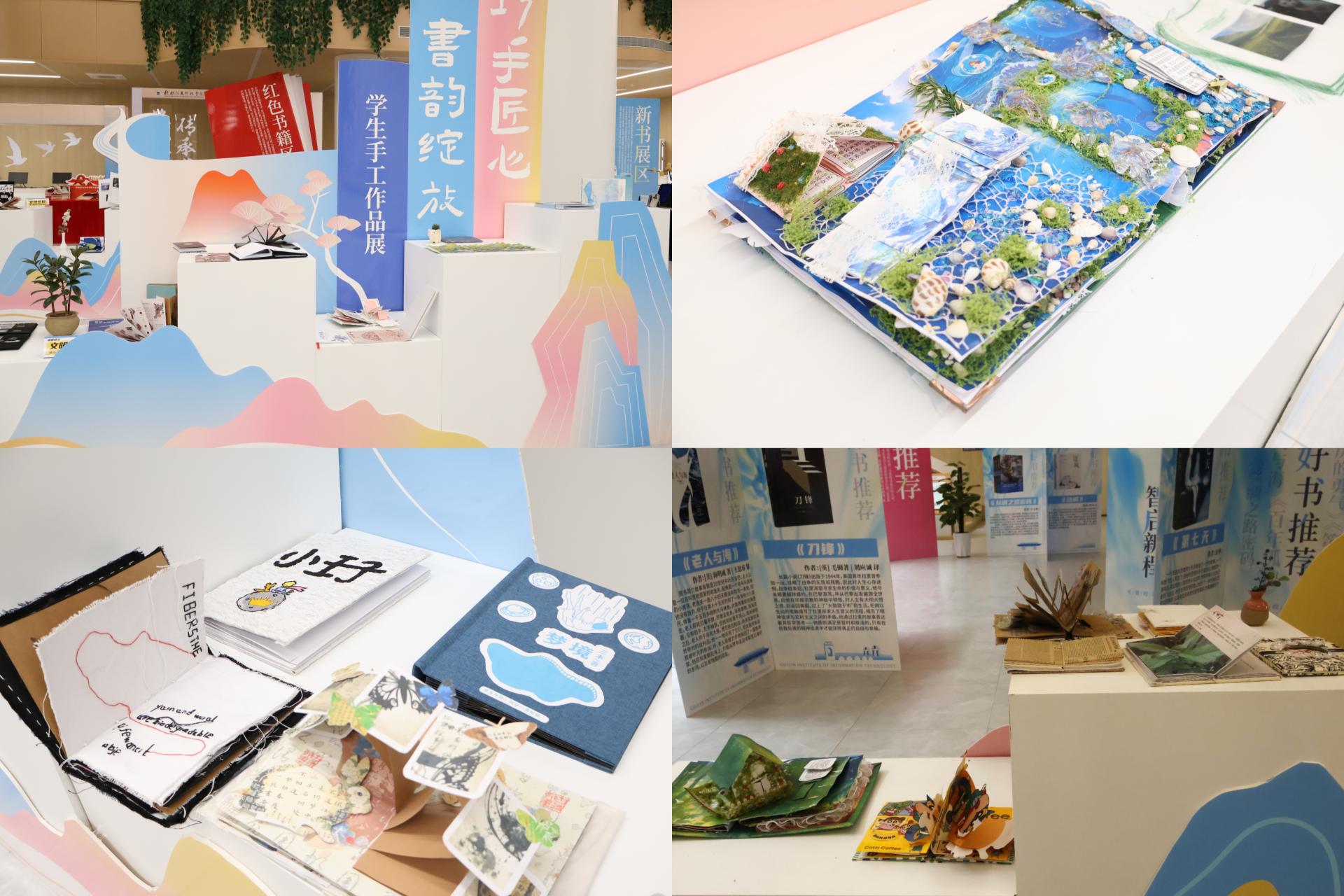 最引人注目的当属学生手工作品展区,这里集中展示了创意设计学院学生在书籍设计课程中的优秀作业。同学们充分发挥专业特长与创新思维,将平面的书籍内容巧妙转化为富有层次感、互动性的立体艺术作品。有的立体书通过精巧的机关设计,让童话中的城堡拔地而起;有的则利用剪纸、折叠等工艺,生动展现历史场景。这些作品不仅展现了同学们扎实的专业功底,更体现出他们对阅读与创作的独特理解,成为了本次读书展的一大亮点。