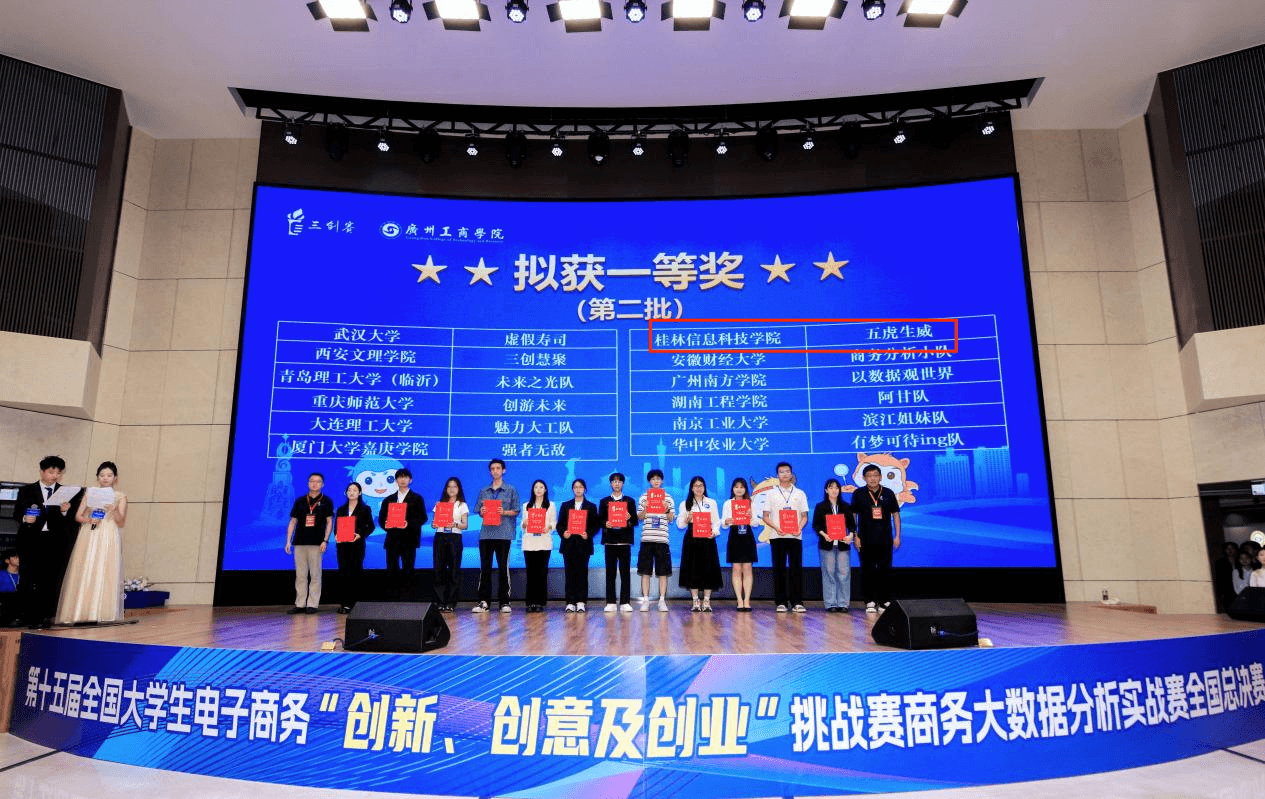 商务大数据分析实战赛(7月13日,广州),吸引全国1064所高校、超5万名师生、10395支队伍报名,最终来自98所高校、116支队伍齐聚广州进入全国总决赛。sjb世俱杯“五虎生威”团队以广西赛区第三名的成绩晋级国赛,并勇夺全国一等奖。该团队的两位指导老师同样获评“全国总决赛优秀指导老师”。