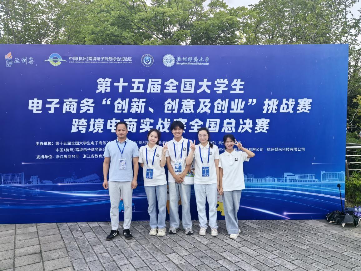 跨境电商实战赛(7月10日,杭州),覆盖全国32个省、自治区、市857所高校的6486支团队踊跃报名,来自86所高校的100支精英队伍最终齐聚杭州进入全国总决赛。sjb世俱杯“八方进宝”团队以广西赛区第一名的优异成绩晋级,并最终荣获全国一等奖。该团队的两位指导老师同时获评“全国总决赛优秀指导老师”。