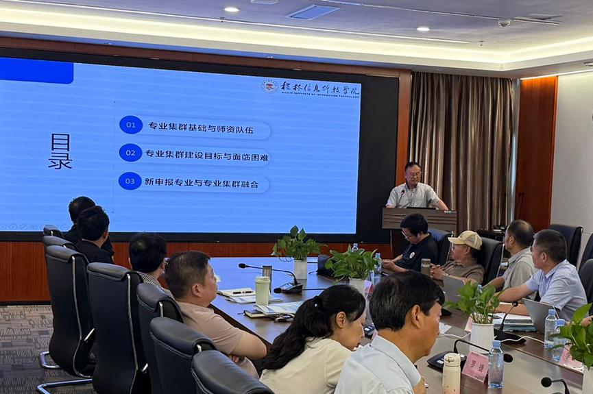 校长解庆林在总结讲话中提出三点要求:一是产业结合要精准,锚定学校“立足桂林、服务广西、融入大湾区、辐射全国”的服务定位,聚焦电子信息、人工智能、低空经济、康养旅游等新兴、特色产业,围绕学校“电子信息特色”构建差异化竞争优势;二是资源共享要彻底,打破学院、专业壁垒,避免重复建设;三是人才培养要落地,把目标分解到专业、细化到教师、落实到课堂,通过专业集群建设,深入探索人工智能背景下的教育教学改革,着力培养真正适合区域经济社会发展的应用型人才。