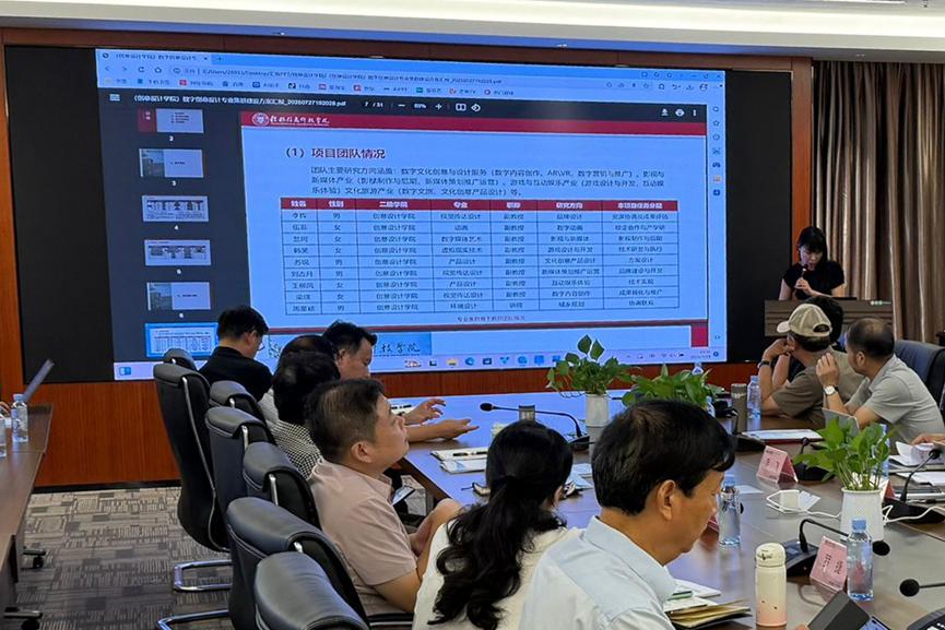创意设计学院院长黄晓瑜介绍“数字创意设计专业集群”,依托区级一流课程平台植入AI及元宇宙课程,计划3年内打造一支区级教学团队。