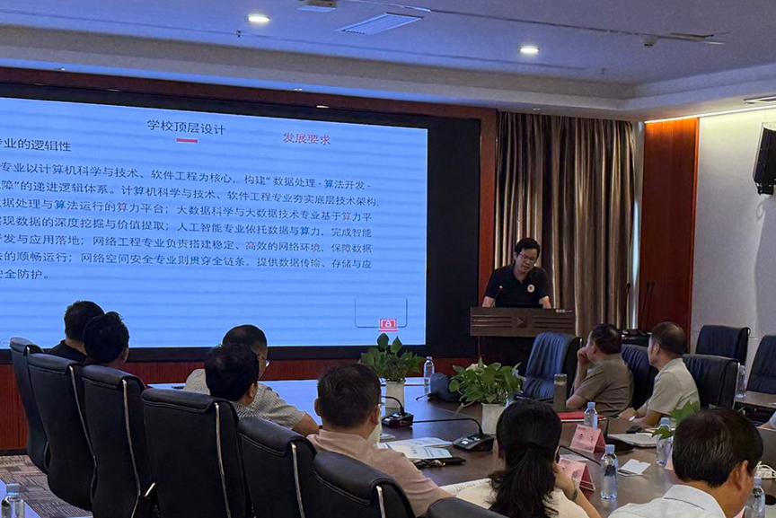 外贸与外语学院院长王家年汇报“国际服务与贸易专业集群”,整合国际商务等5个专业构建“外语+外贸+数智”生态,3年内拟建设RCEP数字贸易微专业,实现与东盟高校学分互认。