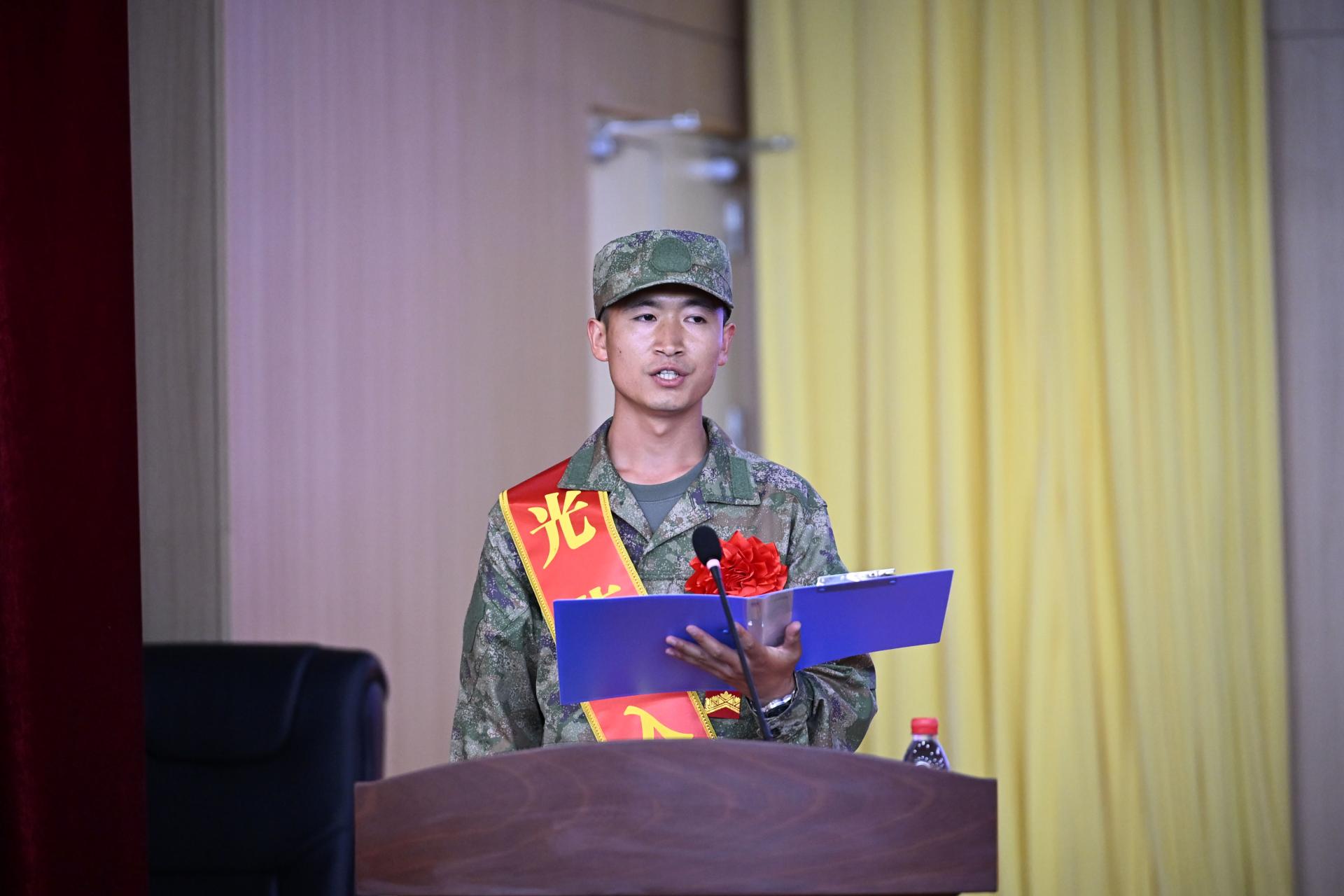 电子工程学院2025届毕业生杨欢代表入伍大学生发言。他向母校、老师及家人表达感谢,承诺在新时代强军事业中努力拼搏,勤奋学习军事技能,刻苦训练,严守纪律,努力将自己锻造为一名“有灵魂、有本事、有血性、有品德”的新时代革命军人,用自己的实际行动,为军旗添彩,为母校争光!为国防建设贡献力量。