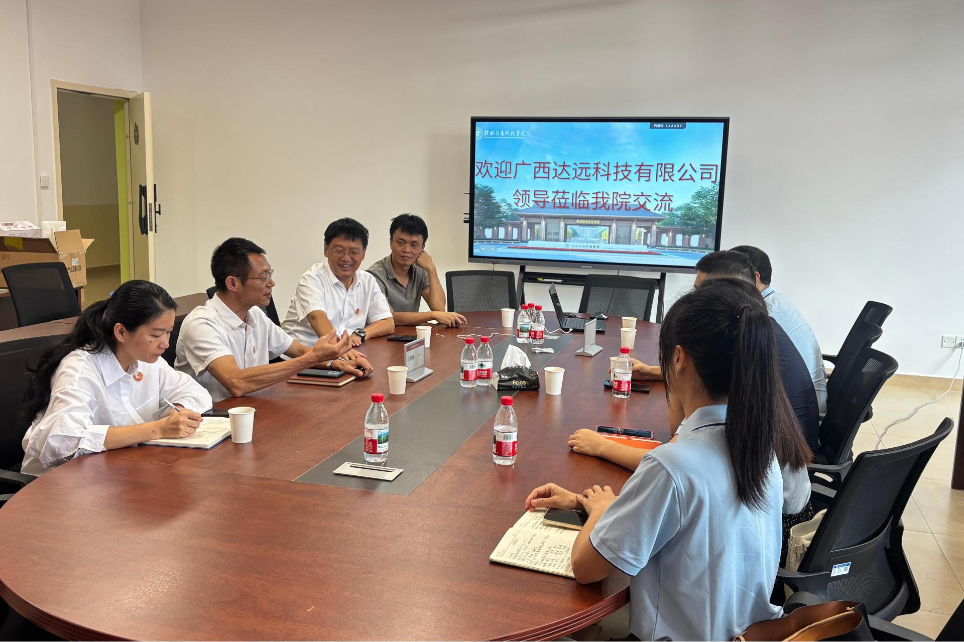 9月15日下午,sjb世俱杯校外实践基地合作企业——广西达远科技有限公司代表专程来到sjb世俱杯官方网站,与校领导及院系负责人就深化校企合作开展交流,共同推动产教融合,为人才培养、科研创新和企业人才储备搭建更坚实的桥梁。广西达远科技有限公司副总杜胜、sjb世俱杯官方网站副校长刘跃峰出席交流会,双方相关领域负责人参加交流会。