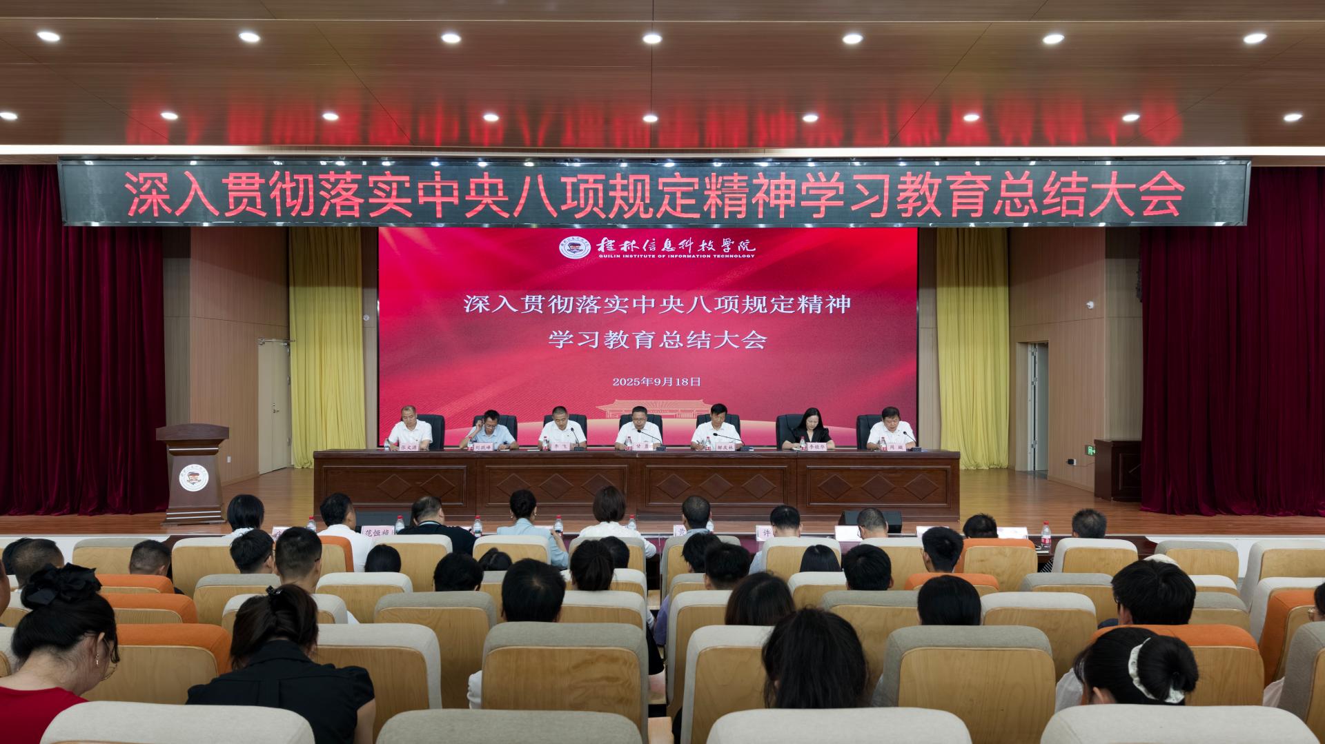 9月18日上午,学校召开深入贯彻中央八项规定精神学习教育总结会,全面总结学校深入贯彻中央八项规定精神学习教育的做法及成效,对巩固拓展学习教育成果、常态长效推进作风建设进行再动员再部署。学校党委书记甘勇,党委副书记、校长解庆林,党委副书记李飞,副校长李桂华、刘跃峰,纪委书记、校长助理周璇,党委委员、纪委委员、各二级党组织书记、全体中层管理干部、各级党支部书记参加会议。