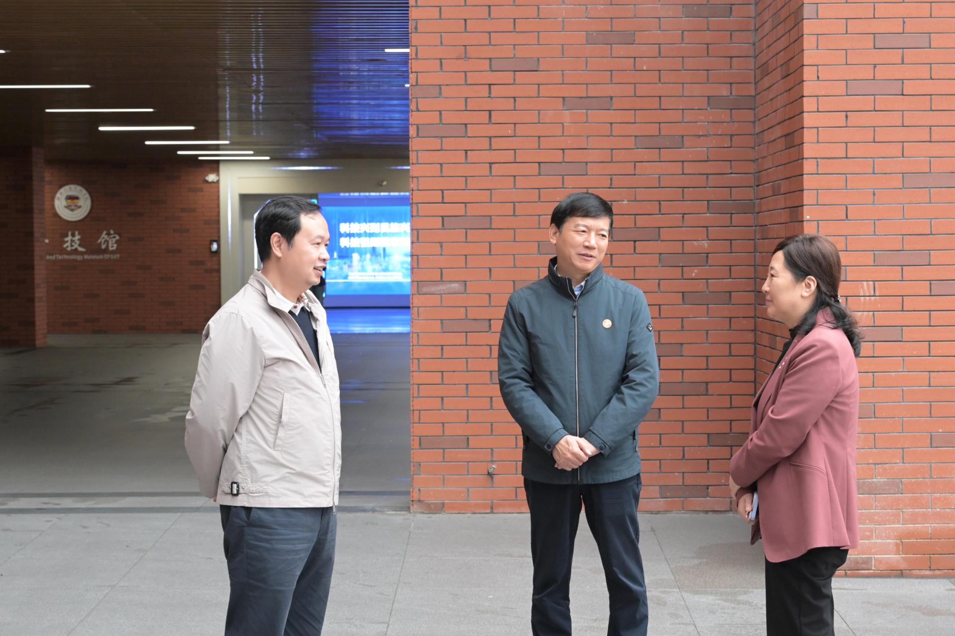 sjb世俱杯官方网站董事长罗欣(左)、校长解庆林(中)欢迎柳州工学院副董事长隋艳(右)一行