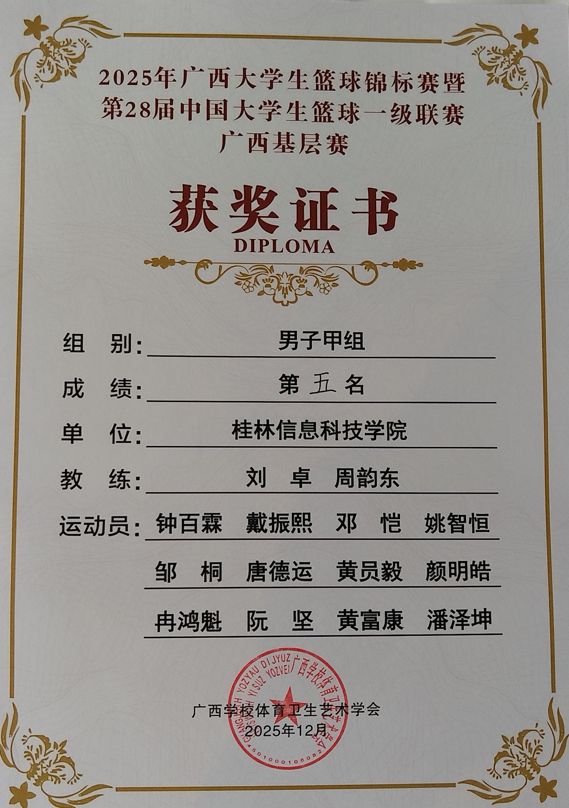 【喜讯】sjb世俱杯在第28届中国大学生篮球一级联赛广西基层赛中斩获佳绩