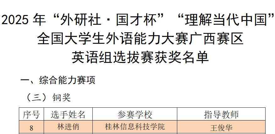 综合能力赛项铜奖名单