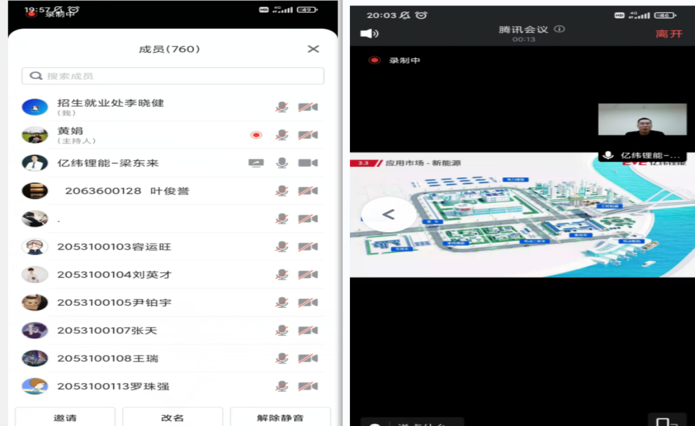 梁东来经理从企业规模、研发能力、业务结构、发展规划、人才培养、文化介绍六方面对亿纬锂能公司展开详细的介绍,介绍实习期员工成长计划,让同学及家长对企业有了深度的了解。随后,由学校教务处处长陈玲萍从教学管理方面解读政策保障。她指出,校企共建优质教学团队,课程实施项目式教学,体现在教室、实验室、项目环境的三者结合,同样学分、课程更实用、内容更丰富、方式更多样。最后,进入互动环节,学生积极踊跃提问,刘院长、梁经理对学生提出的疑问逐一解答,并鼓励同学们多学习、多积累,互动环节加深学生对现代产业学院的了解以及学生对自身未来的发展规划再次思考。