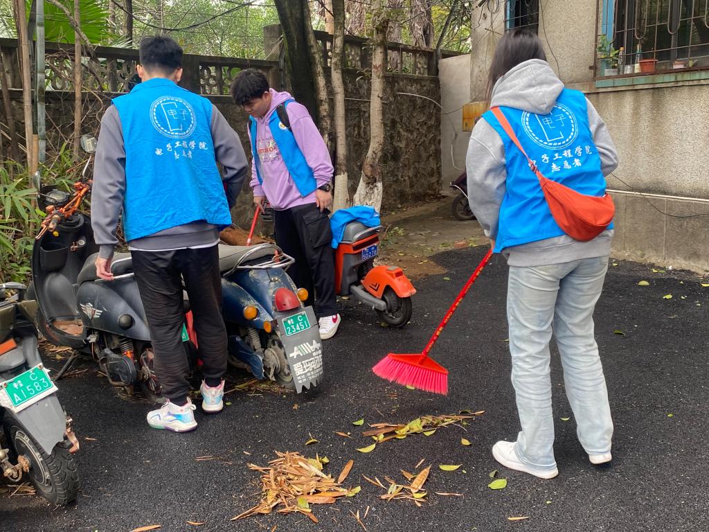 活动中,学生志愿者与汇通社区党员志愿者一起手持扫帚、铁锹等工具,清扫落叶和垃圾。清扫过程中,每一位志愿者充分发扬“不怕苦、能吃苦”的优良作风和“不怕脏、不怕累”的实干精神。