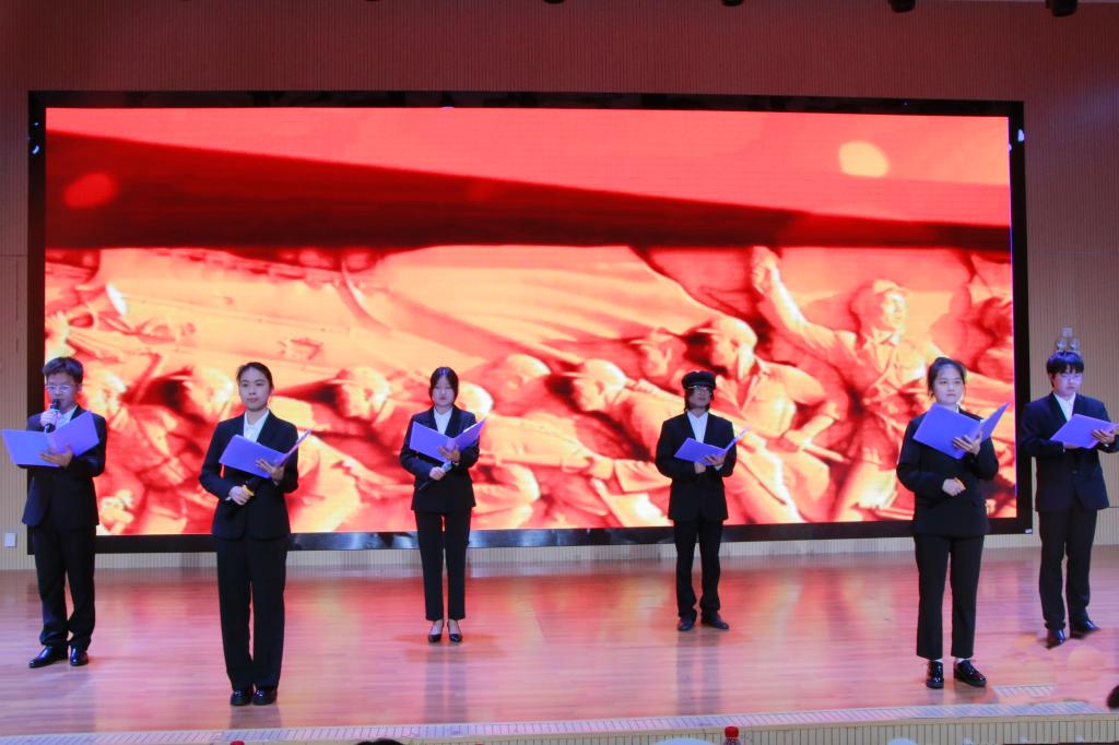 为进一步学习宣传贯彻党的二十大精神,推动校园文化建设提能增效,在第28个世界读书日来临之际,4月19日下午,机电工程学院“学思践悟二十大,砥砺奋进新征程”经典诵读展示活动在51206举行,桂林电子科技大学初芒戏剧团、932校园广播电台播音指导老师徐大鹏、校党委学生工作部部长周璇、图书馆馆长申琍、学生工作部副部长梁自珍、校团委书记文超、机电工程学院党总支书记黄娟担任评委,全体辅导员和学生代表共300余人参加本次活动。