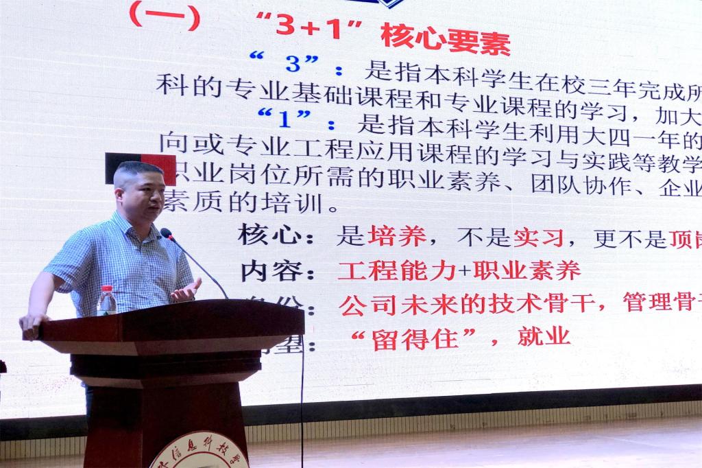 会上,韩院长介绍了学院近年来开展校企联合培养工作的概况和成效,详细分析了学生参加校企联合培养的意义和目的。同时他指出,校企联合培养是同学们增强专业技能的重要平台,希望参与的同学们认真完成联合培养的教学安排,主动通过参加校企联合培养提升专业能力,实现自身高质量就业。