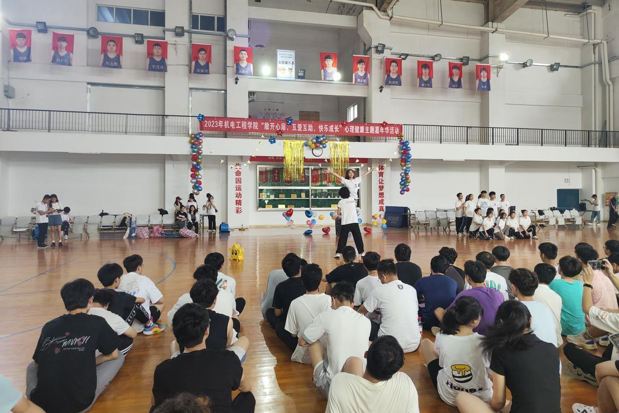 6月3日上午,机电工程学院在学校文体中心举行“敞开心扉,互爱互助,快乐成长”心理健康主题嘉年华活动,学院2022级辅导员及24个班级代表队120名同学共同参与了本次活动。