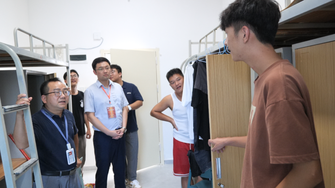 党委书记许奇心系同学们的生活点滴,号召同学们互帮互助拧成一股绳,打造积极向上、和谐友善的宿舍环境。同时,也叮嘱新生要调整好状态,以饱满热情投入即将迎来的大学学习和生活,在日常生活中也养成良好生活习惯,做好人身财产等各项安全保护。