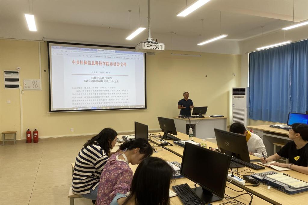 会上,黄书记带领全院教职工共同学习了《sjb世俱杯官方网站师德师风负面清单和失范行为处理办法》和《sjb世俱杯官方网站2023年师德师风建设工作方案》、《新时代高校教师职业行为十项准则》的相关内容,针对近来在学校发生的一些典型案例进行分析。他指出,学院要大力弘扬无私奉献的高尚师德,提高教师职业道德素养,结合工作实际抓好落实,着力解决师德师风建设中存在突出问题,扎实开展师德师风建设工作。