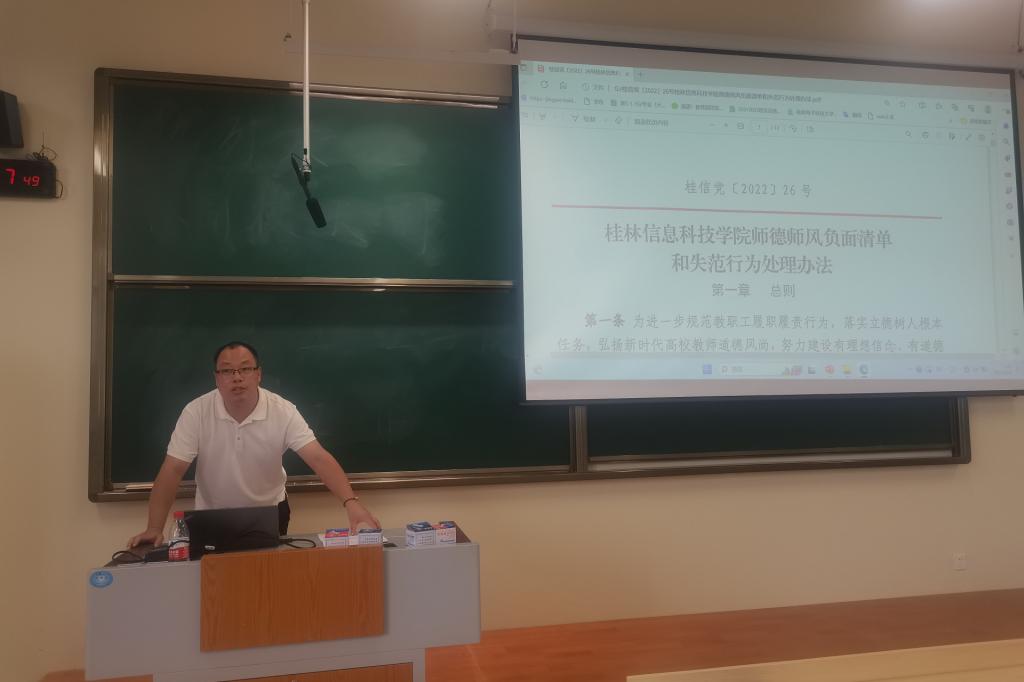 为加强我院师德师风建设,9月8日,信息工程学院在C510组织开展师德师风专题学习,会议由学院党委书记郭健主持,学院院长黄建灯、副院长莫永华出席,学院全体教职工参会。