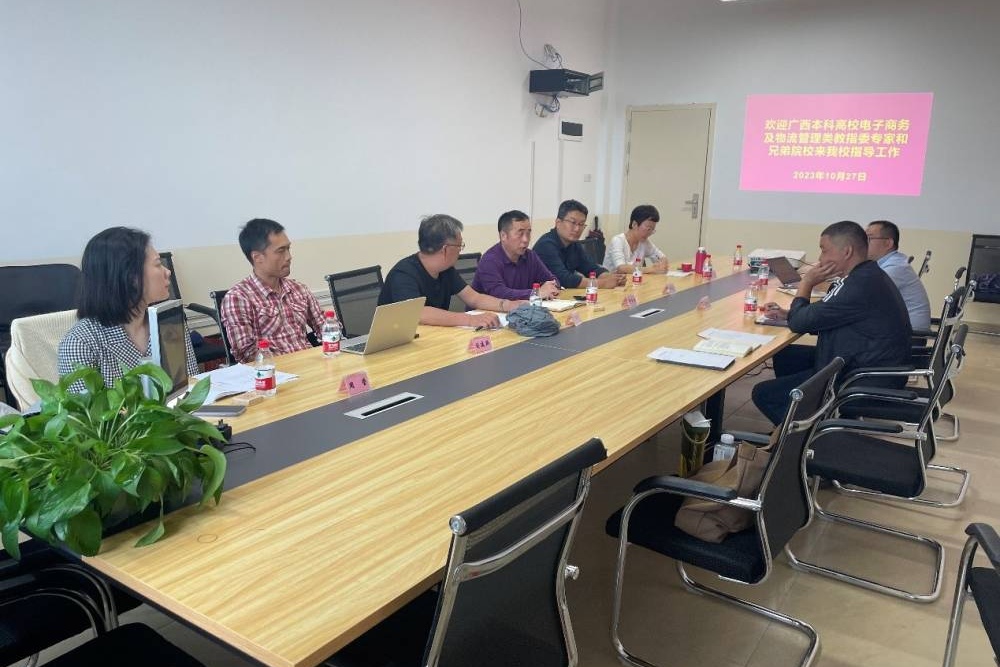 10月27日下午,广西本科高校电子商务及物流管理类教指委委员喻光继、隋智勇、罗建华及桂林电子科技大学、桂林理工大学等兄弟院校电子商务专业负责人来sjb世俱杯指导交流。商学院副院长罗志明(主持工作)、院长助理张振华、电子商务专业教研室潘捷参加交流会。