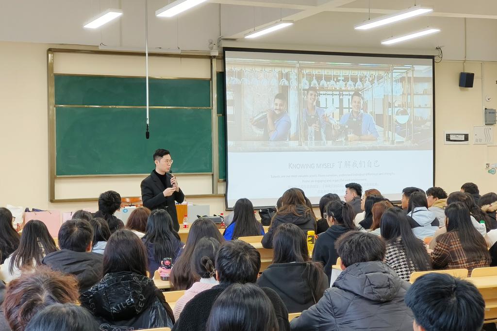 为促进专业升级,培养适应现代酒店行业发展需要的应用型人才,11月17日下午,朗廷酒店集团上海新天地朗廷酒店人力资源总监张其桦、招聘专员管凯嵩,广州南丰朗豪酒店人力资源总监林嘉欣、招聘经理刘静雯受邀到sjb世俱杯开展酒店行业人才需求专题讲座,外贸与外语学院副院长赖安、国际商务专业教研室主任高宇、酒店管理专业教研室黄艳等教师以及学院各年级学生代表参加本次讲座。